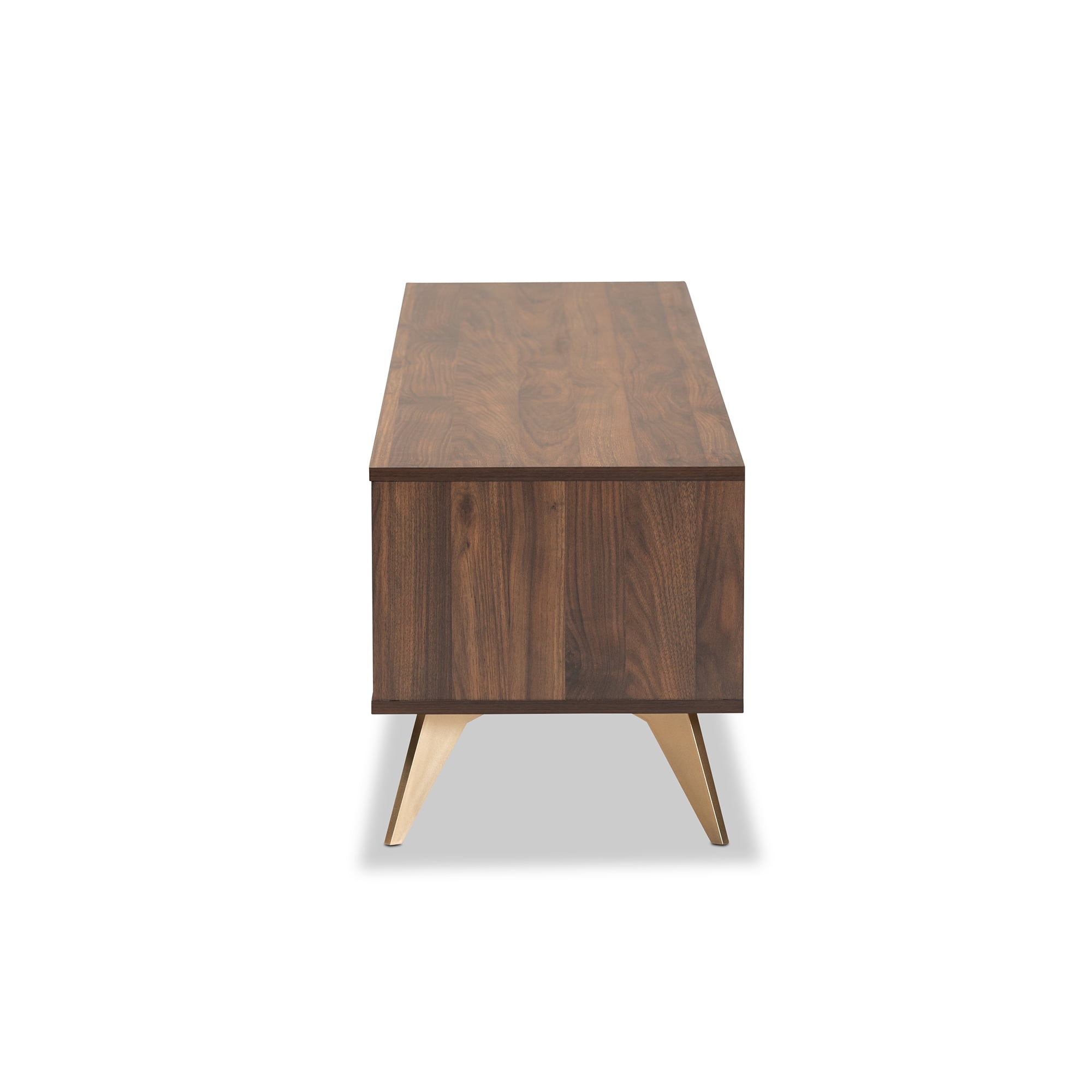 Baxton Studio Dena Mid-Century Modern Walnut Brown Wood and Gold Finished TV Stand