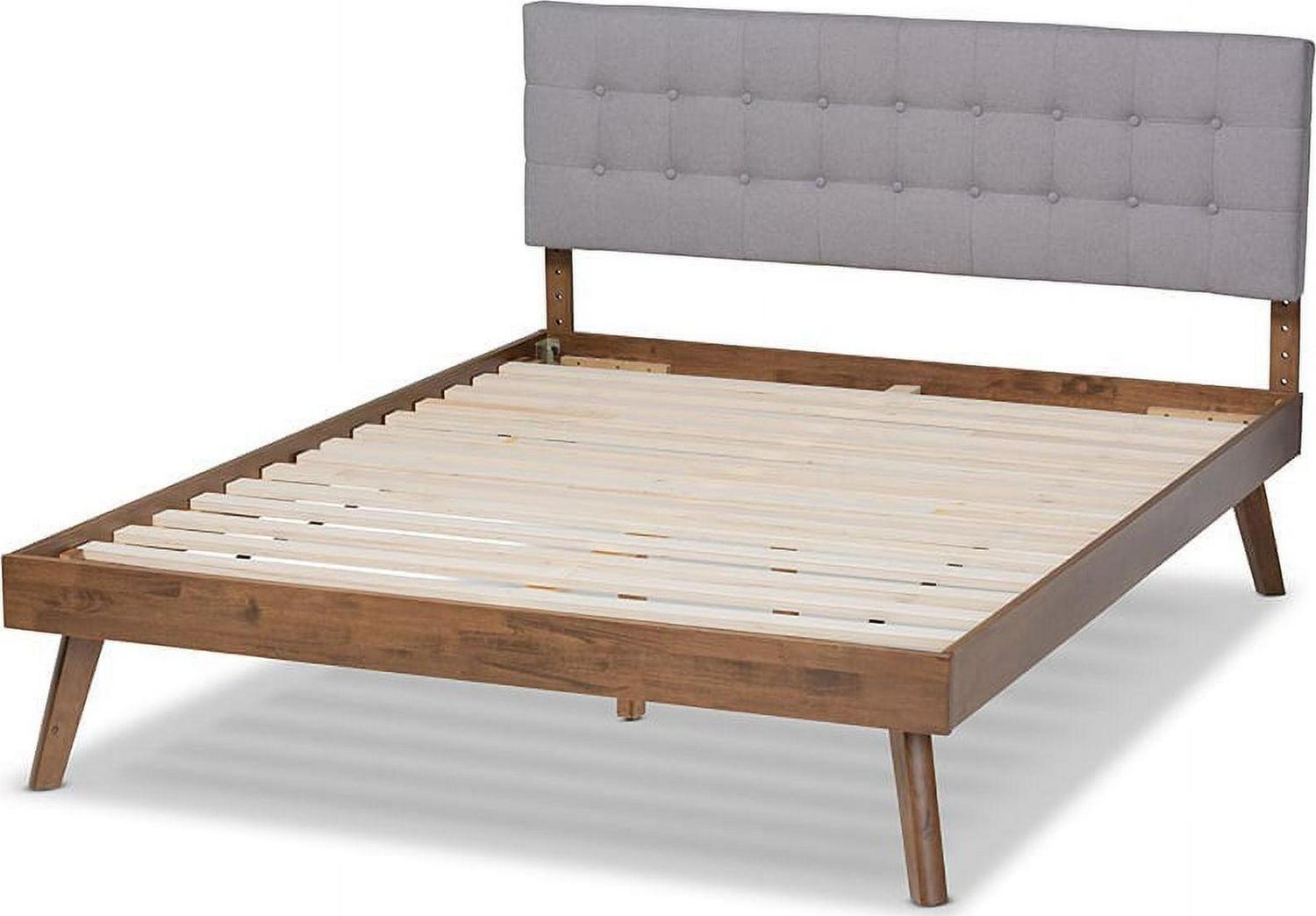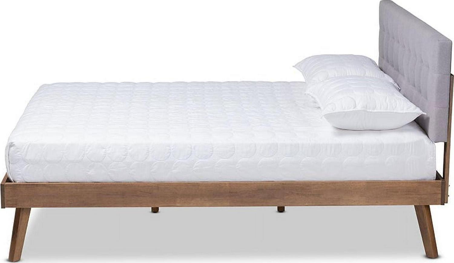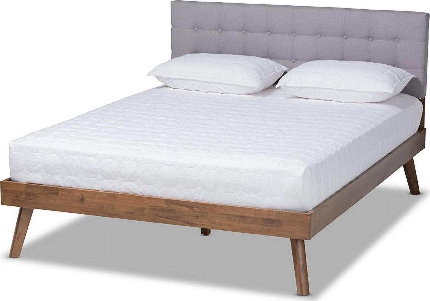 Baxton Studio Devan Mid-Century Engineered Wood Tufted Platform Bed, King, Light Grey/Walnut