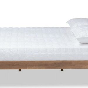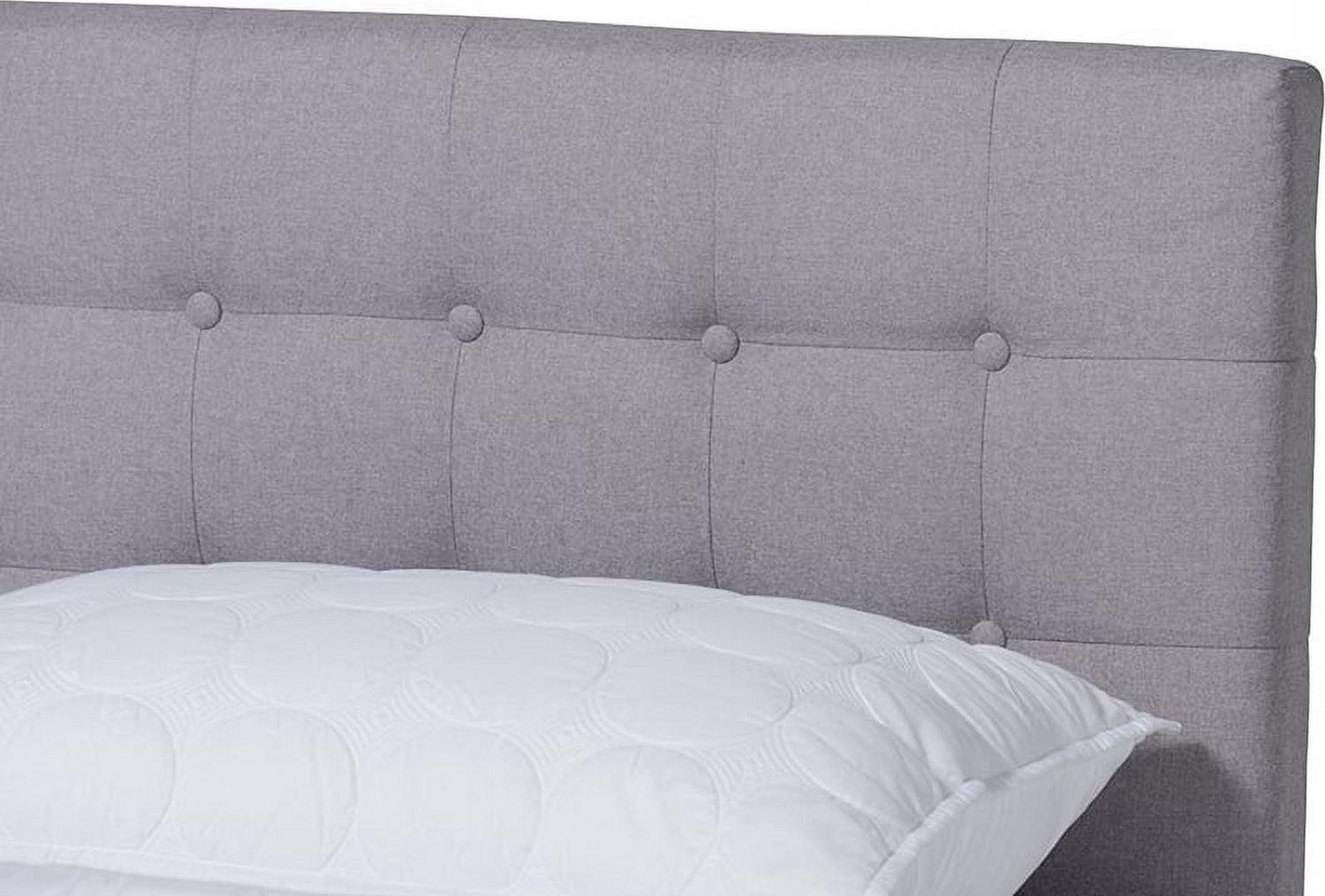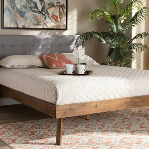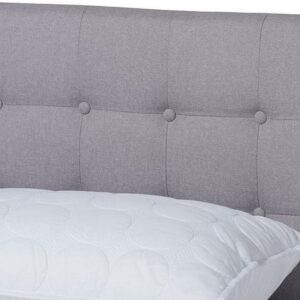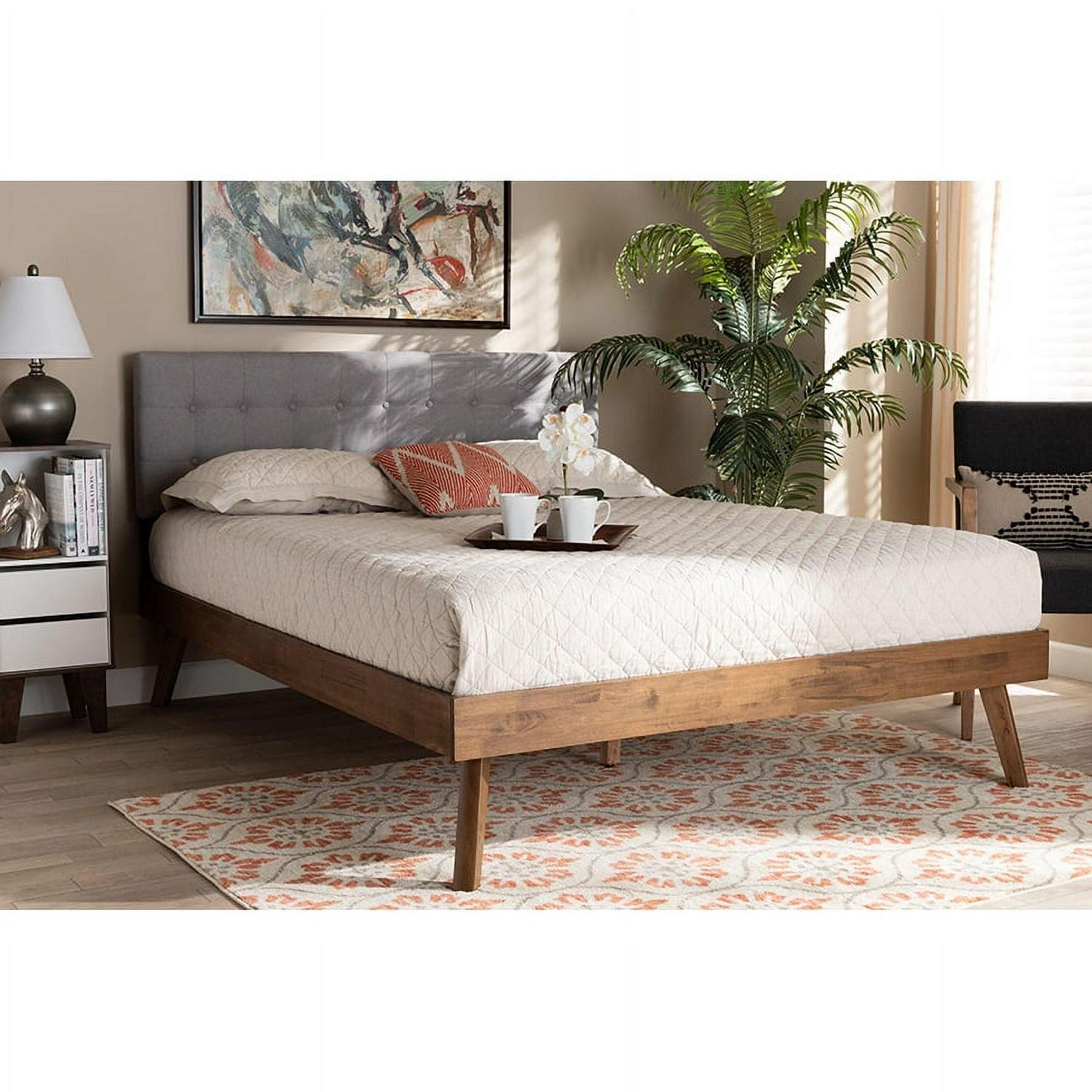 Baxton Studio Devan Mid-Century Engineered Wood Tufted Platform Bed, King, Light Grey/Walnut