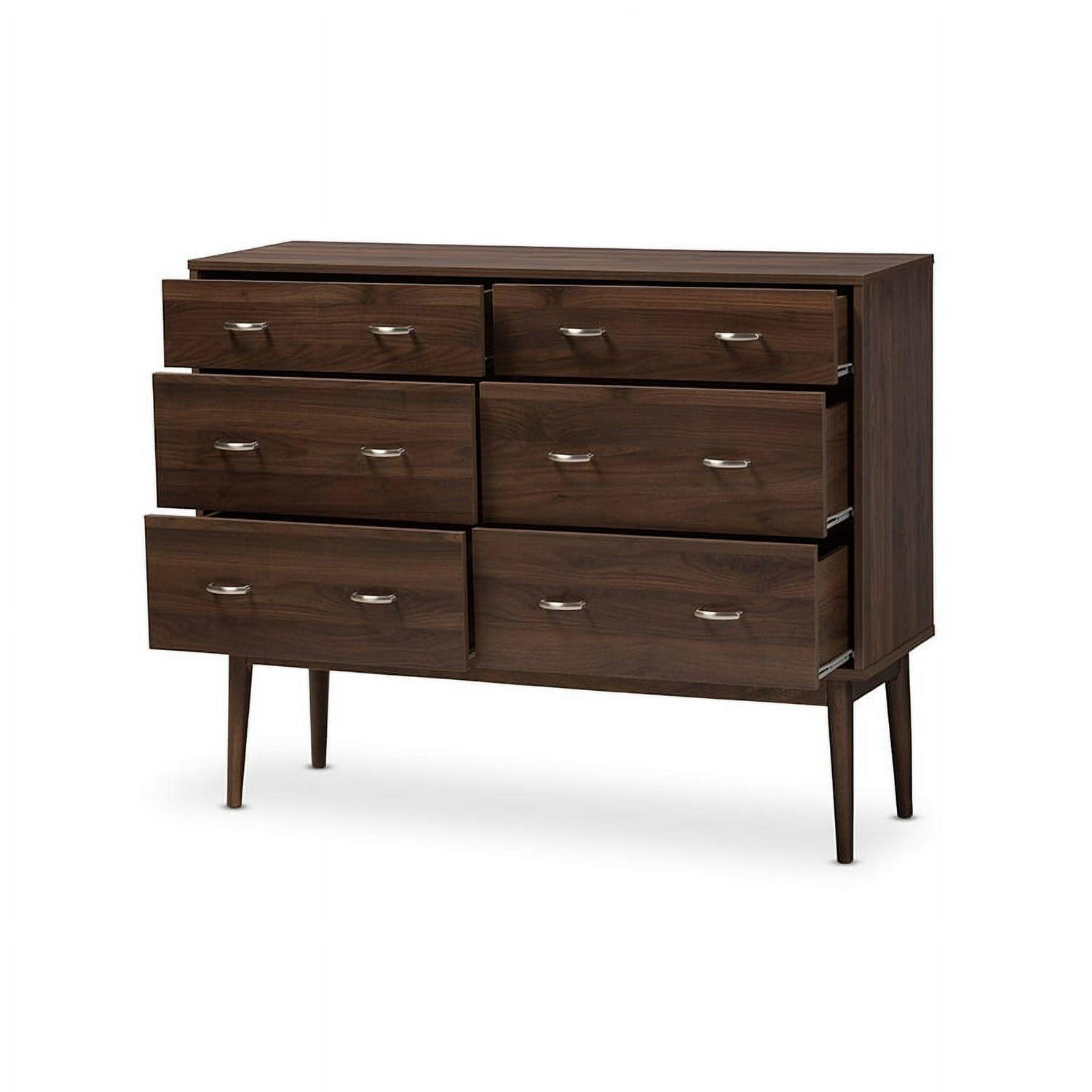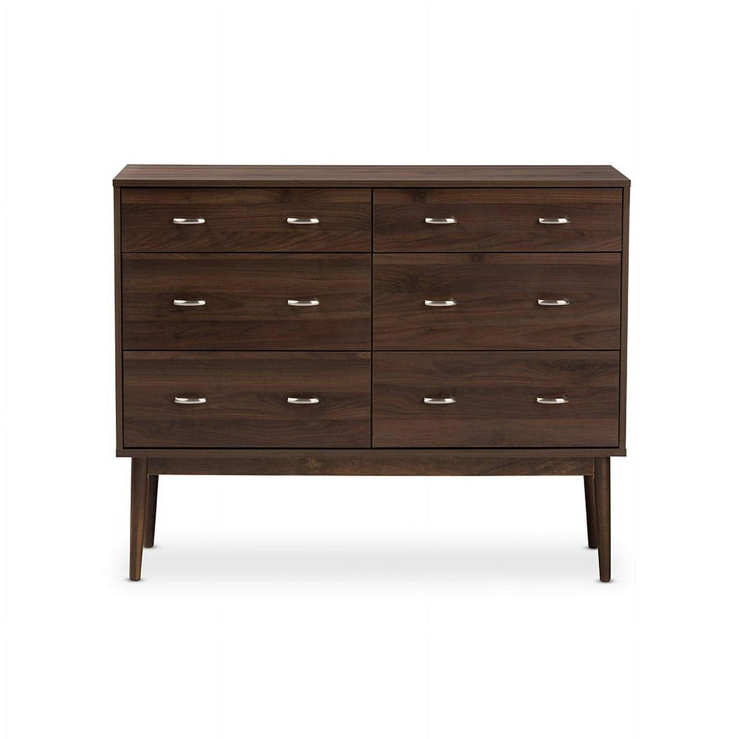 Baxton Studio Disa Mid-Century Modern Walnut Brown Finished 6-Drawer Dresser