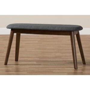 Baxton Studio Easton Mid-Century Modern Dark Grey Fabric Upholstered Walnut Finished Wood Bench