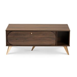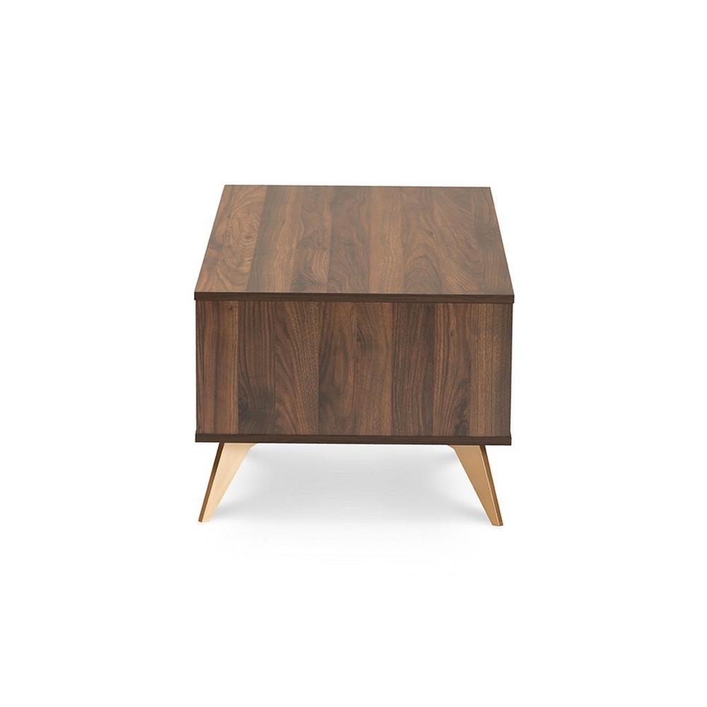 Baxton Studio Edel Mid-Century Modern Walnut Brown and Gold Finished Wood Coffee Table