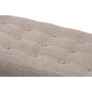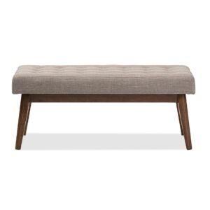 Baxton Studio Elia Mid-Century Modern Walnut Wood Light Grey Fabric Button-Tufted Bench