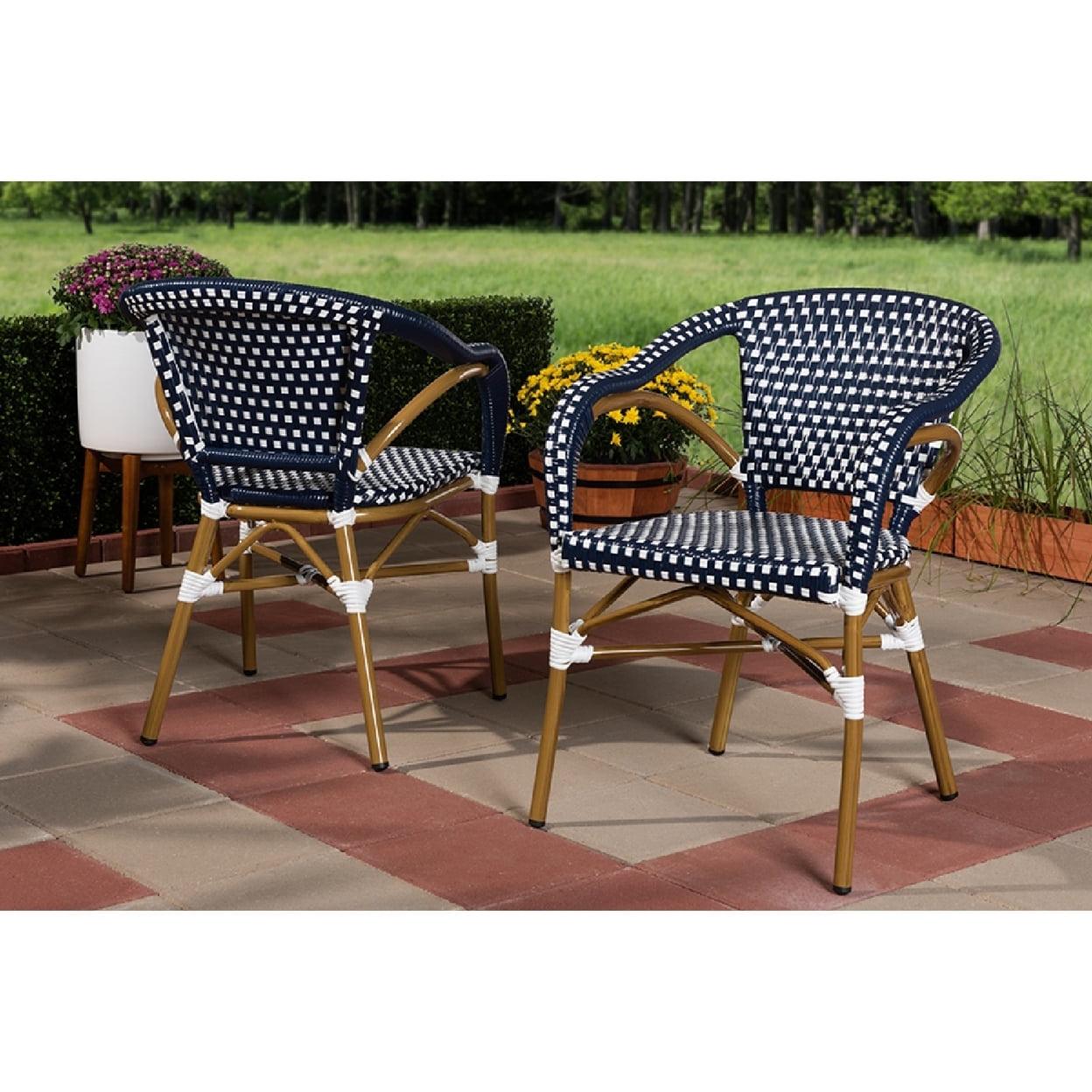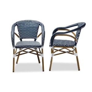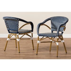 Baxton Studio Eliane Classic French Indoor and Outdoor Navy and White Bamboo Style Stackable Bistro Dining Chair Set of