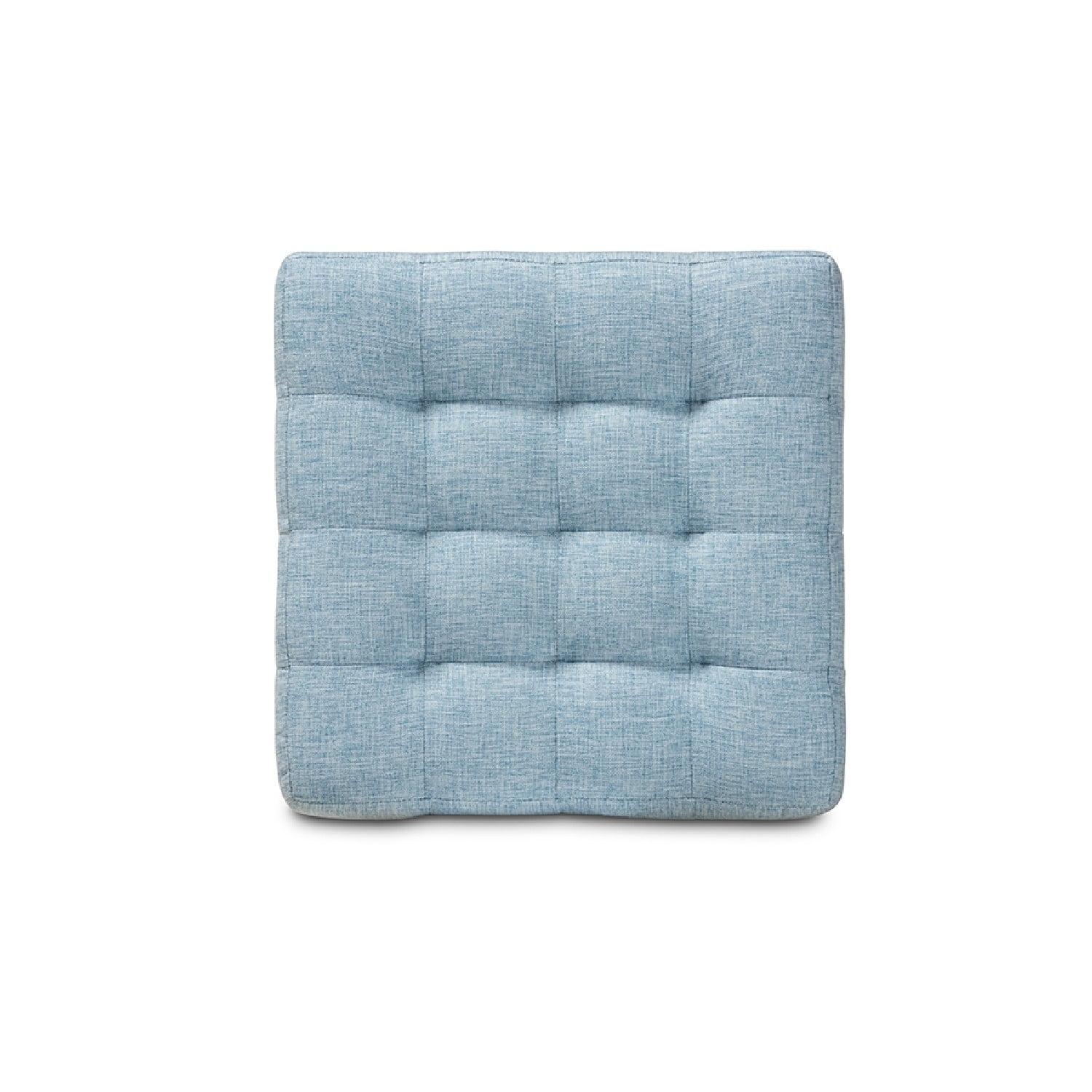 Baxton Studio Elladio Modern and Contemporary Light Blue Fabric Upholstered Tufted Cube Ottoman Set of 2 Stylish and versatile, the Elladio ottoman is easy to incorporate into any room in the home. Embodying modern design, the ottoman features a cube silhouette complemented by biscuit tufting on all sides. Its wooden frame is upholstered in soft, durable polyester fabric for endless comfort. Black plastic feet complete the look. This multipurpose piece can be used as a seat, footstool, or casual table. The Elladio ottoman is made in Malaysia and will arrive fully assembled.