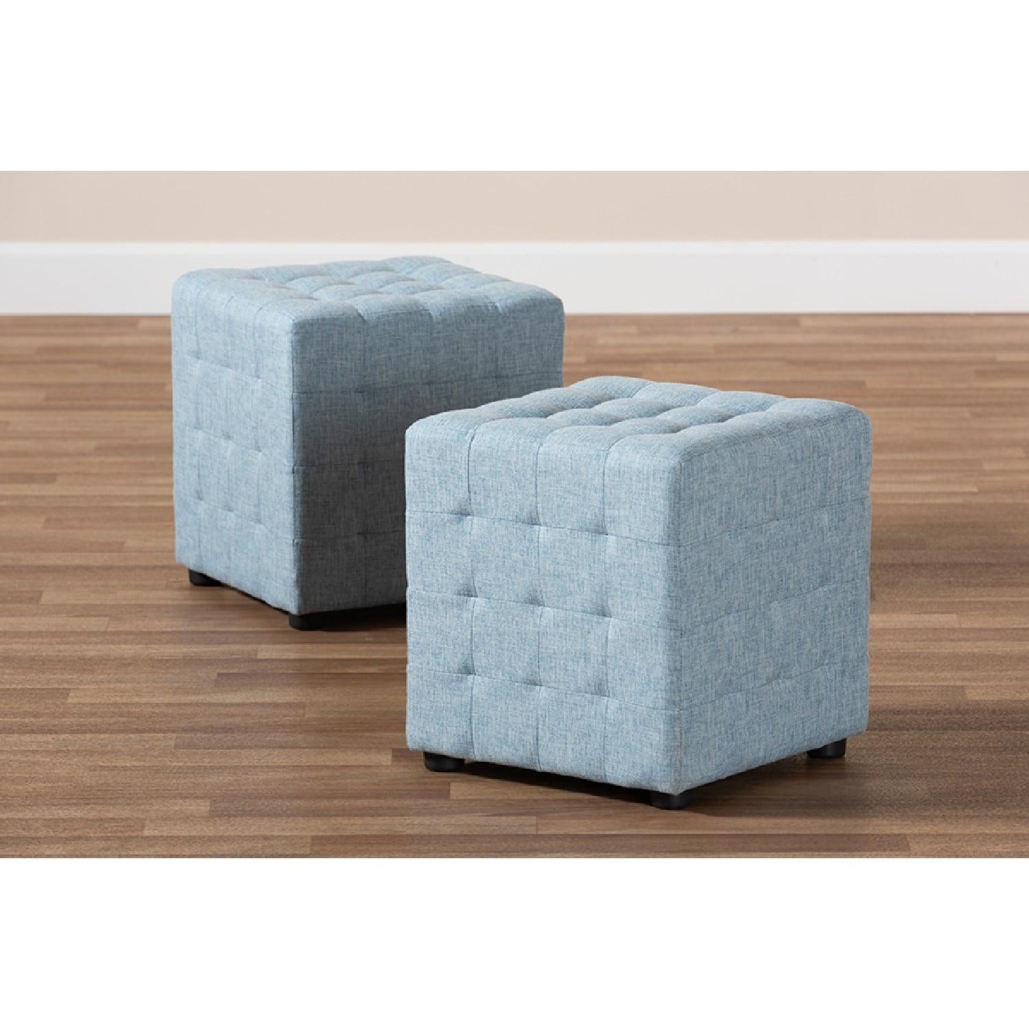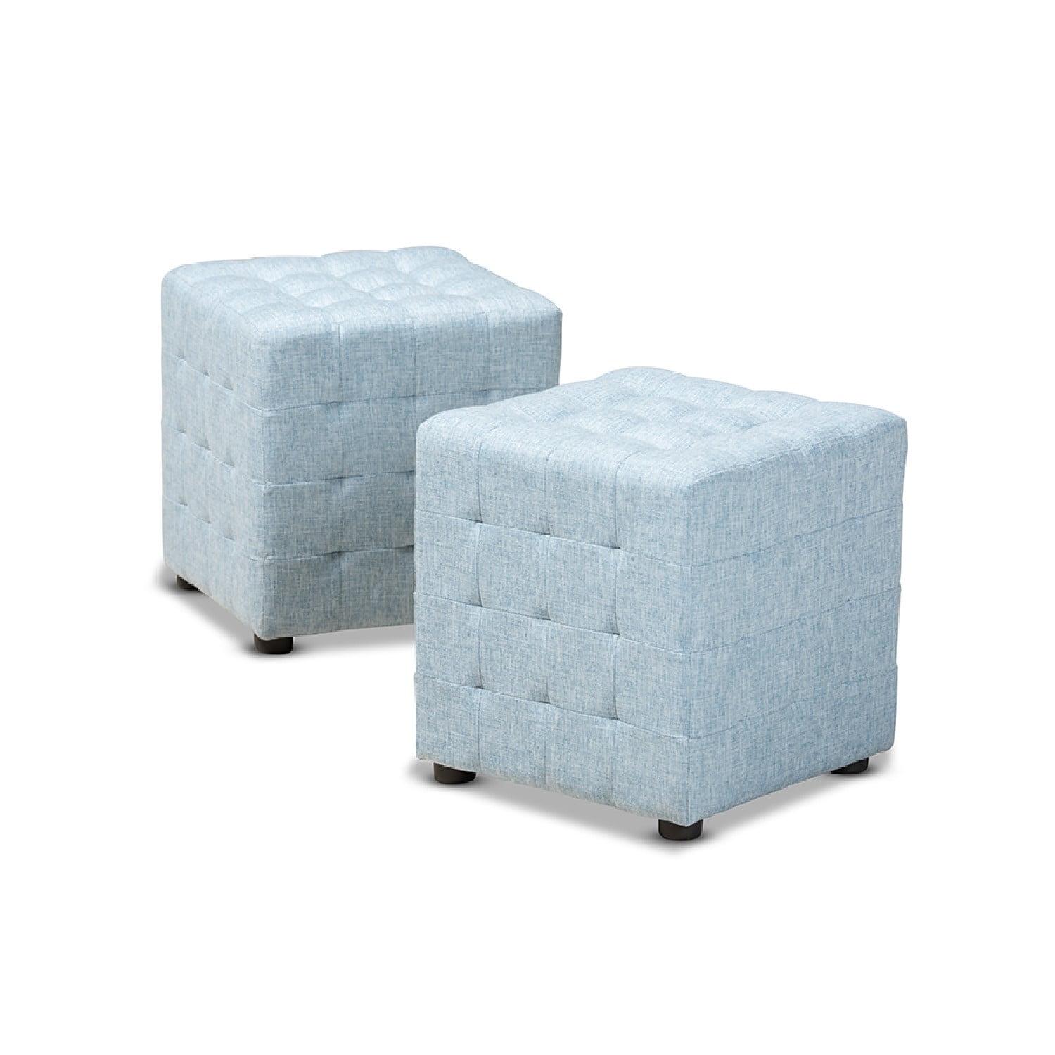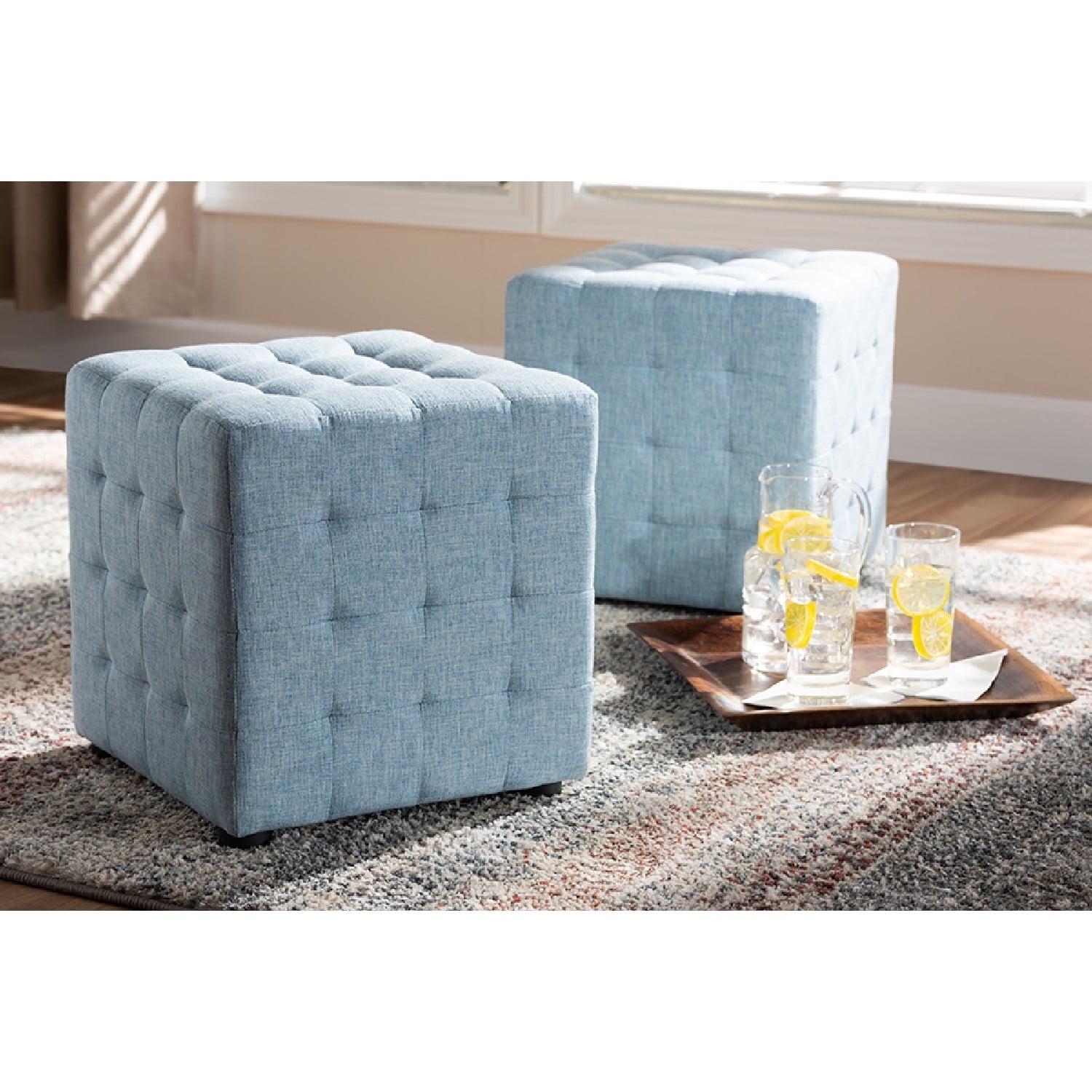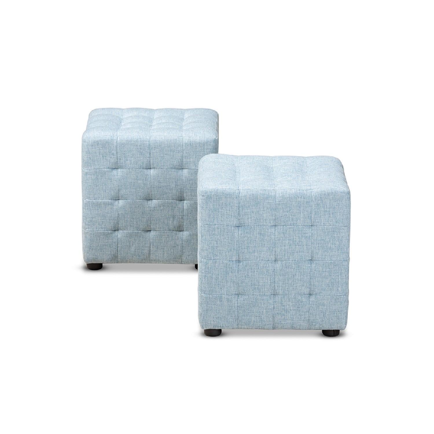 Baxton Studio Elladio Modern and Contemporary Light Blue Fabric Upholstered Tufted Cube Ottoman Set of 2