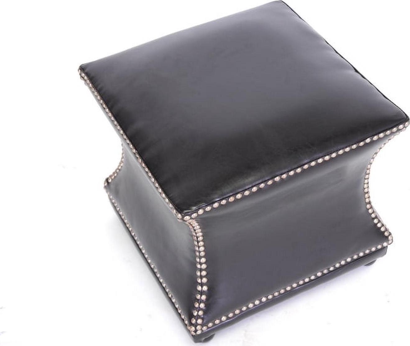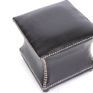 Ellastone Dark Brown Modern Leather Ottoman Looking for a twist on a basic ottoman If so, the Ellastone Ottoman with unexpected concave sides delivers! Our modern ottoman is made with a sturdy birch wood frame, black ball legs, and CA117 flame retardant cushioning. Completing the contemporary footstool is silver nail head edging on the dark espresso brown bonded leather. Made in China, the modern ottoman is fully assembled and should be wiped clean with a dry cloth. Features: – Contemporary hassock ottoman – Dark brown bonded leather – Birch frame with black stained legs – High density polyurethane foam cushioning (CA117 flame retardant) – Silver tone metal nail head trim – Concave sides – Fully assembled – Made in China Looking for a twist on a basic ottoman If so, the Ellastone Ottoman with unexpected concave sides delivers.