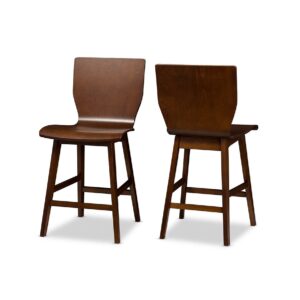 Baxton Studio Elsa Mid-century Modern Scandinavian Style Dark Walnut Bent Wood Counter Stool (Set of 2)