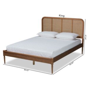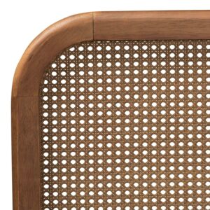 Baxton Studio Elston Mid-Century Modern Walnut Brown Finished Wood and Synthetic Rattan Full Size Platform Bed