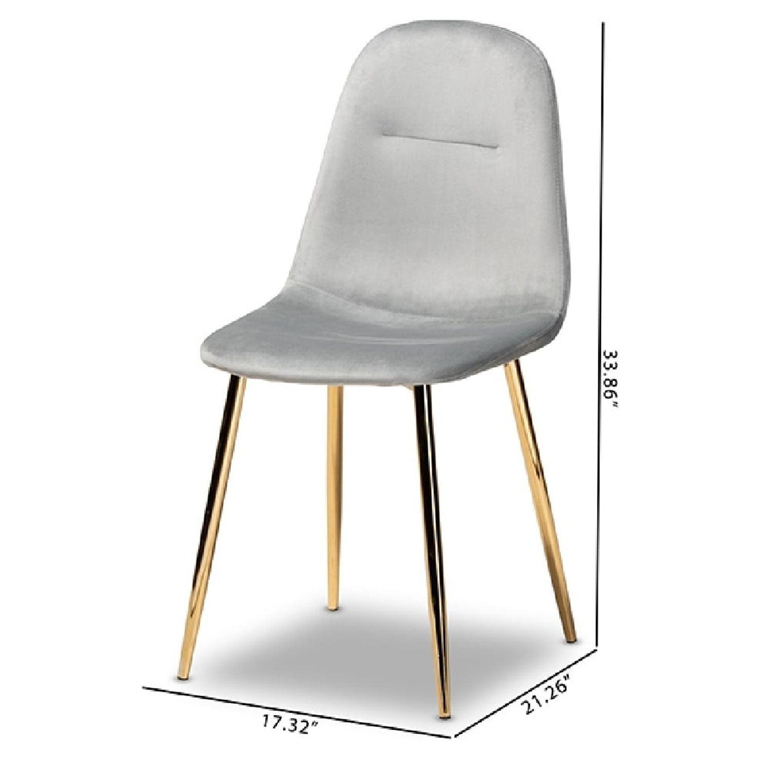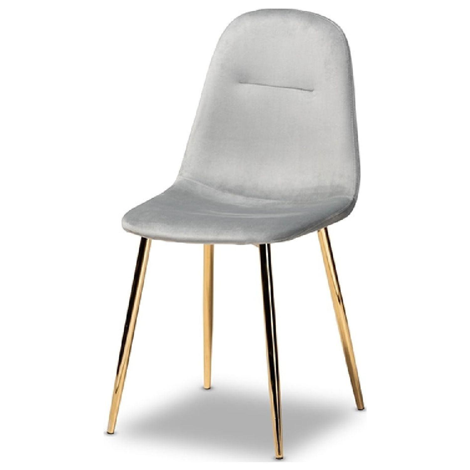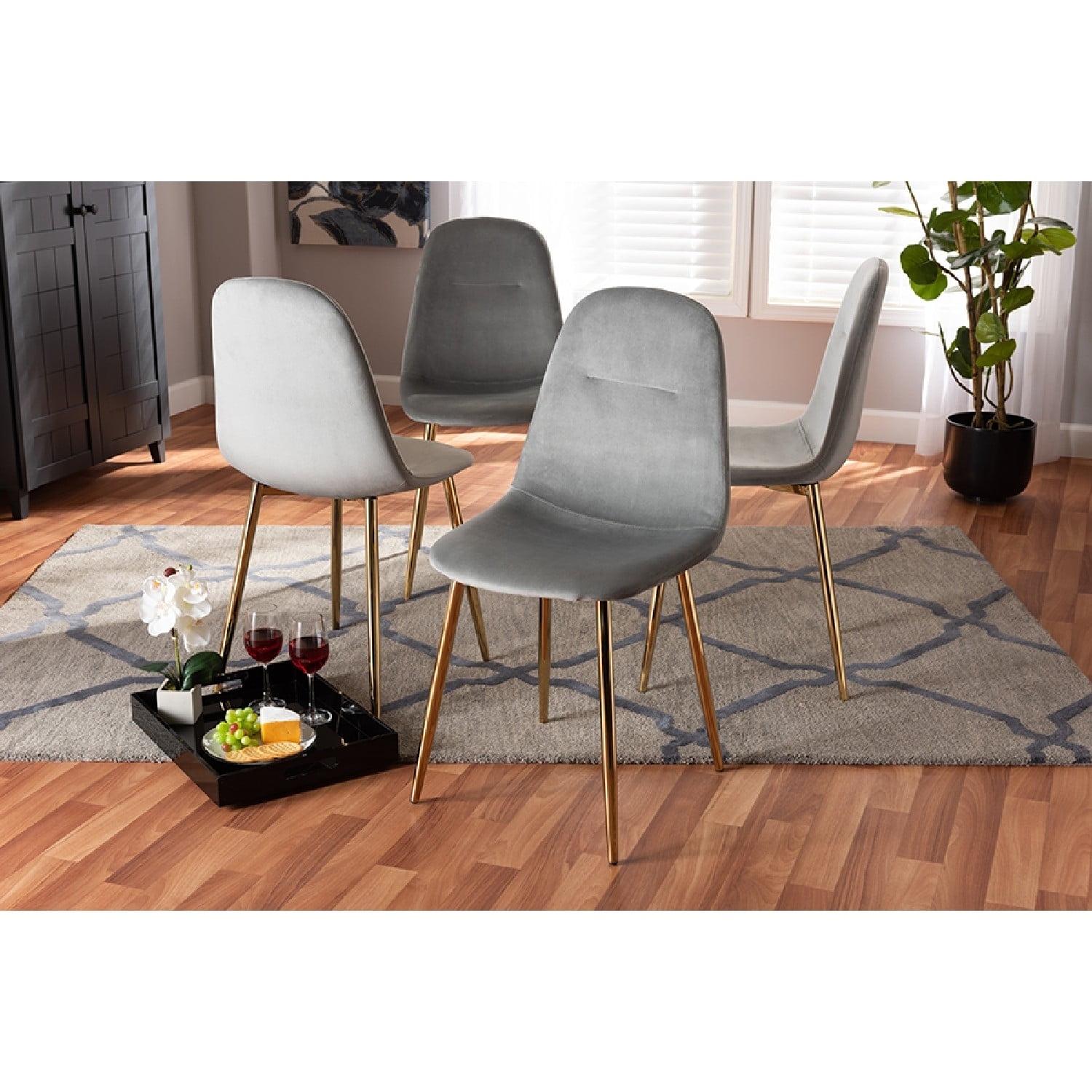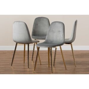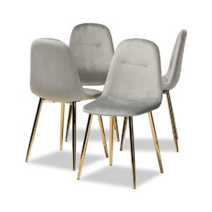 Baxton Studio Elyse Glam and Luxe Grey Velvet Fabric Upholstered Gold Finished 4-Piece Metal Dining Chair Set