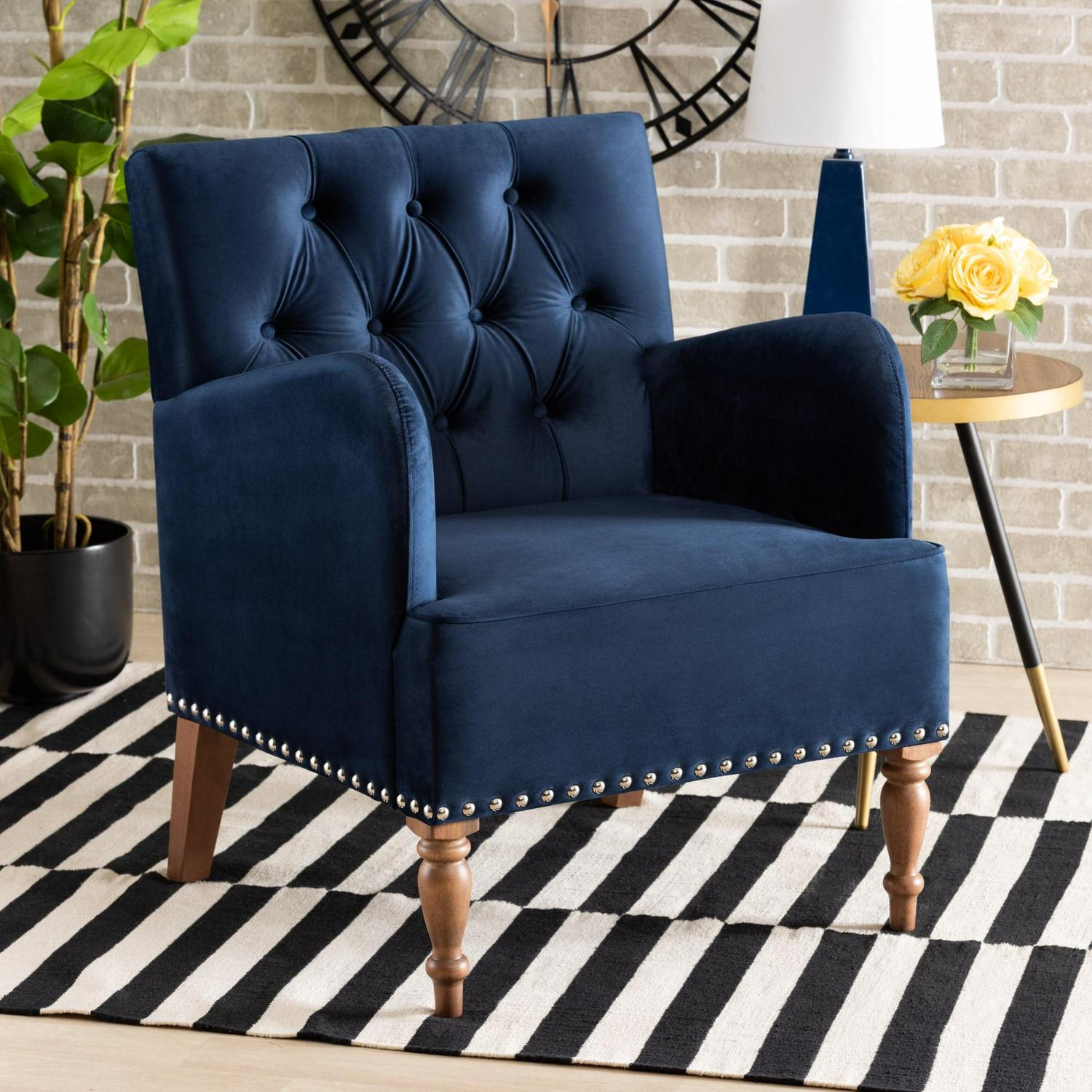 Baxton Studio Eri Lounge Chair, Navy Blue