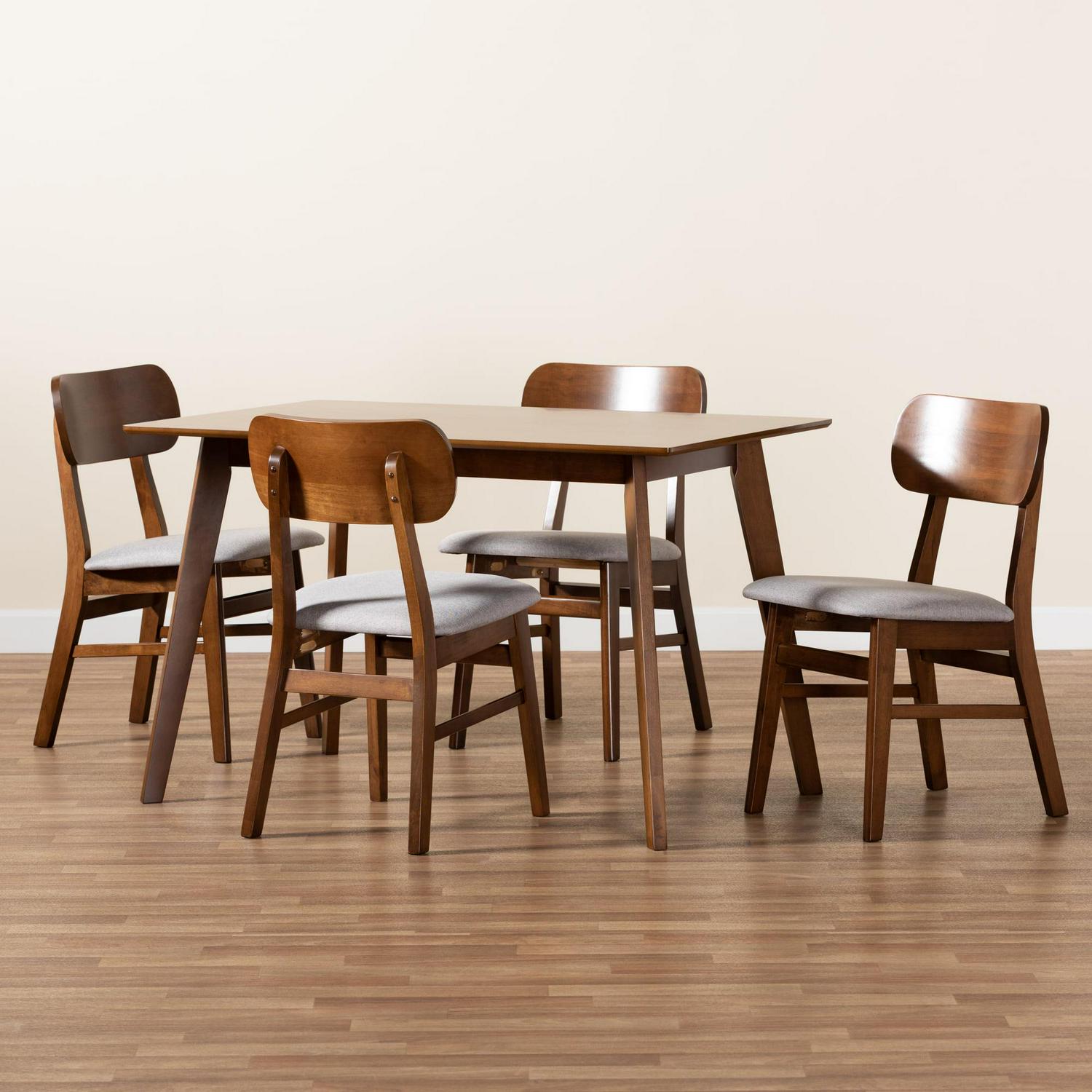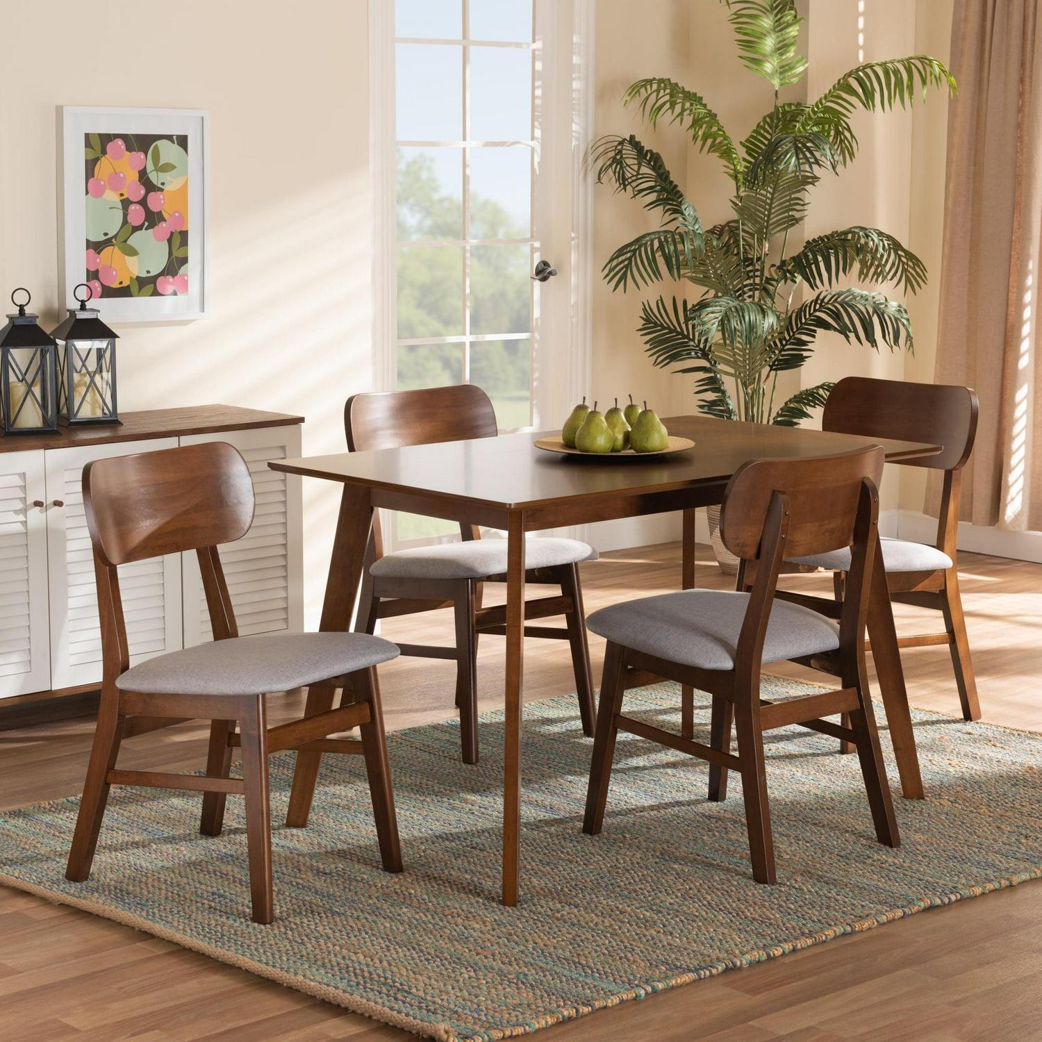 Baxton Studio Euclid Mid-Century Modern Grey Fabric Upholstered and Walnut Brown Finished Wood 5-Piece Dining Set
