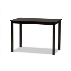 Baxton Studio Evelyn Modern and Contemporary Beige Faux Leather Upholstered and Dark Brown Finished 5-Piece Dining Set The Evelyn 5-piece dining set embodies stylish classic design, clean straight lines and smooth faux leather upholstery. With flawless simplicity, its suitable for any dining room. Solid rubber wood construction guarantees a good amount of years to come. Foam-padded seat maximizes comfort and makes it ideal for extended seating. So sit back and enjoy those Deep dinners and conversations with your friends and family. Made in Malaysia, the Evelyn dining set requires assembly.