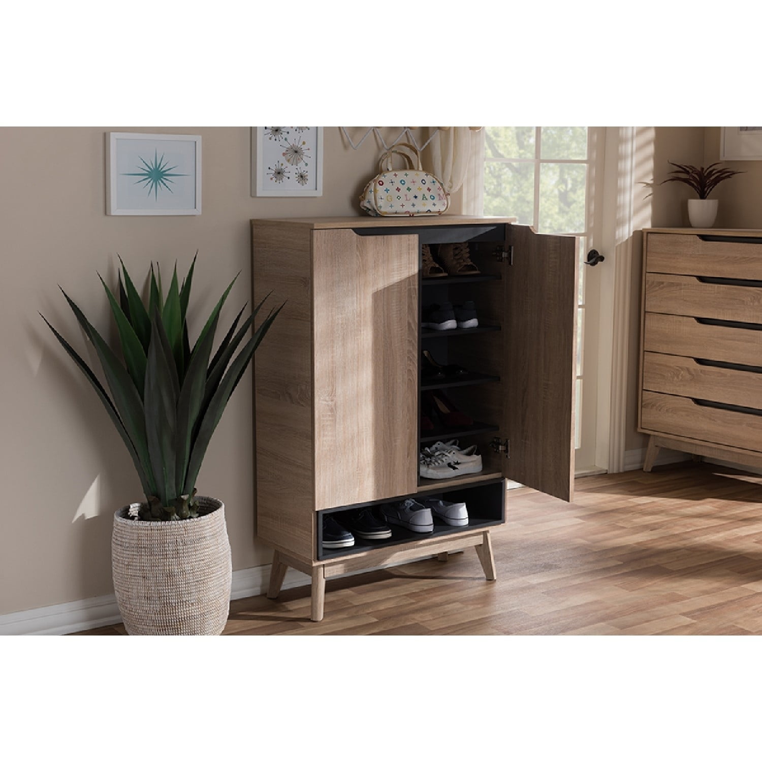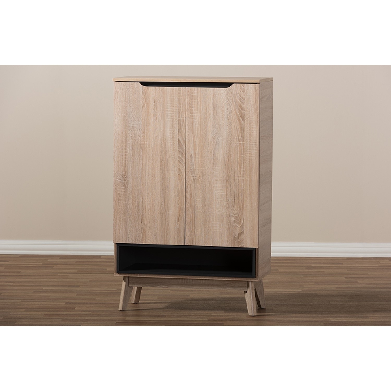 Baxton Studio Fella Mid-Century Modern Two-tone Oak and Gray Wood Shoe Cabinet