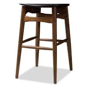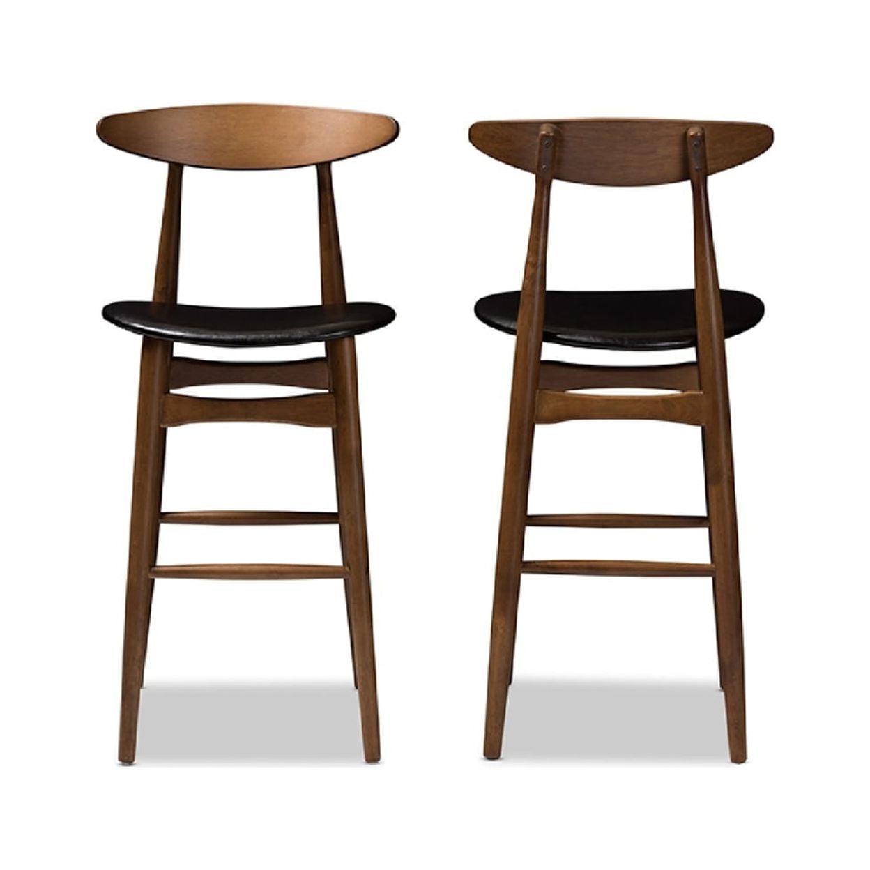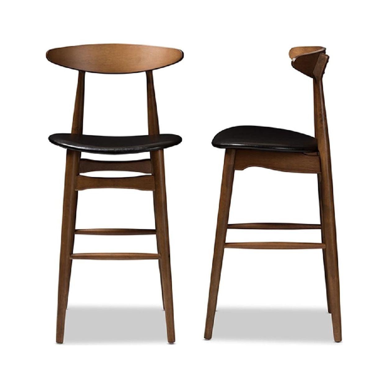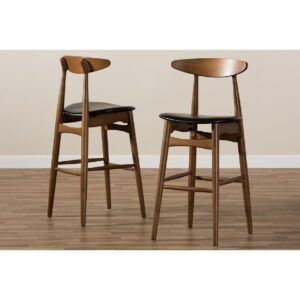 Baxton Studio Flora Mid-Century Modern Black Faux Leather Upholstered Walnut Finished Bar Stool (Set of 2)
