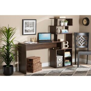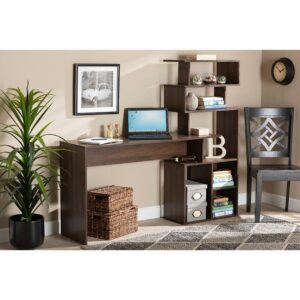 Baxton Studio Foster Modern and Contemporary Walnut Brown Finished Wood Storage Desk with Shelves
