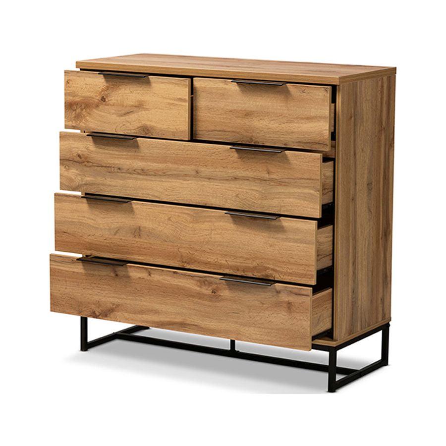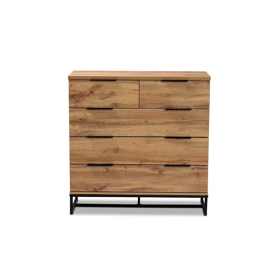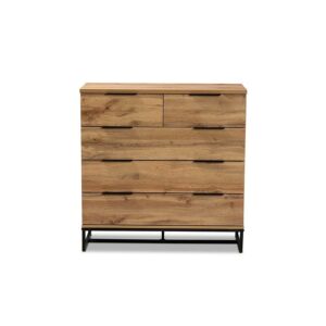 Baxton Studio Franklin Modern and Contemporary Oak Finished Wood and Black Finished Metal 5-Drawer Bedroom Chest