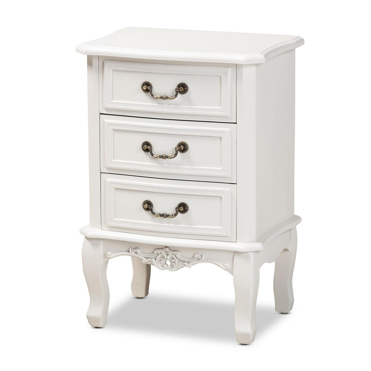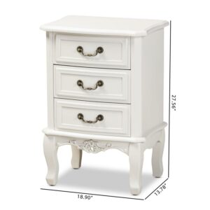 Baxton Studio Gabrielle Traditional French Country Provincial White-Finished 3-Drawer Wood End Table
