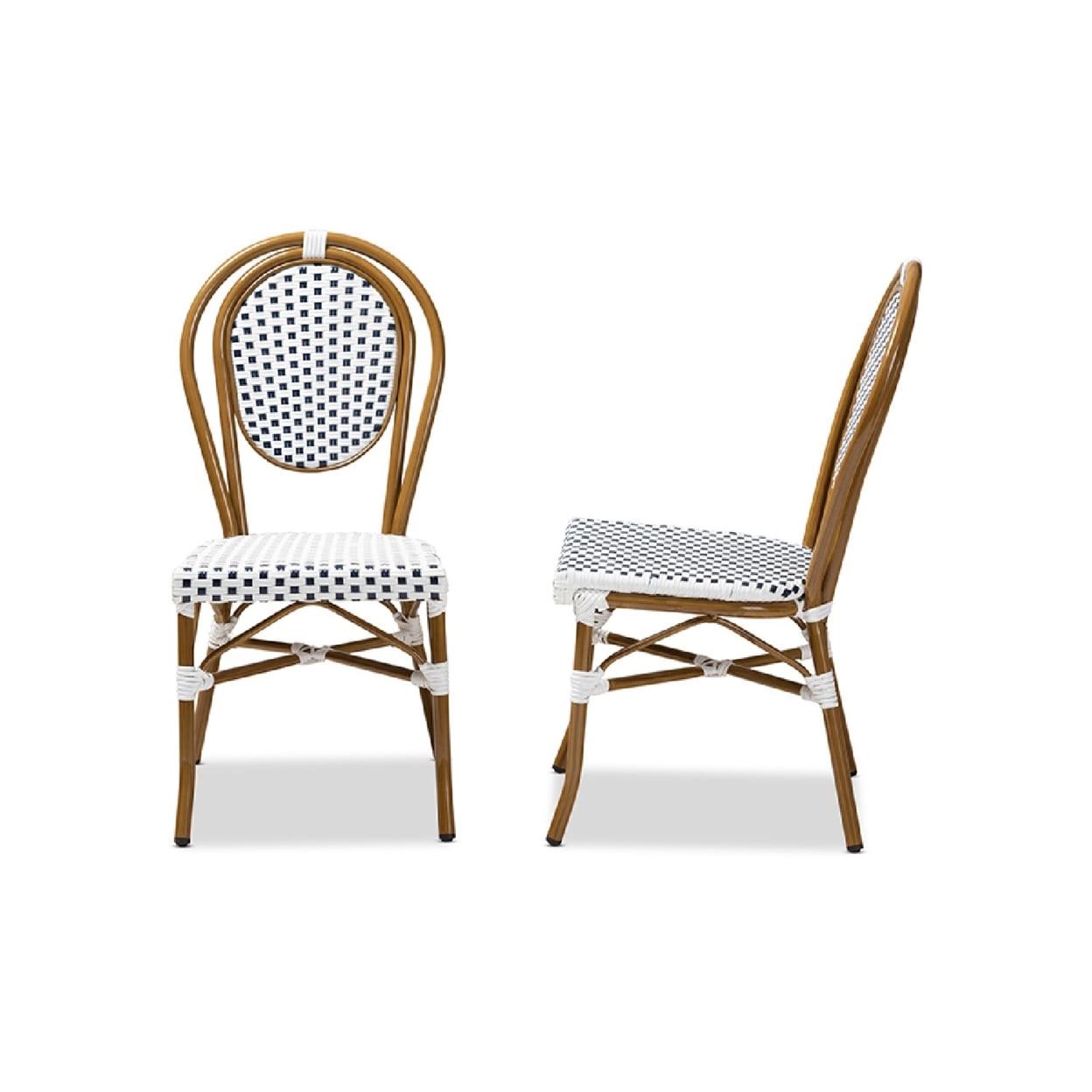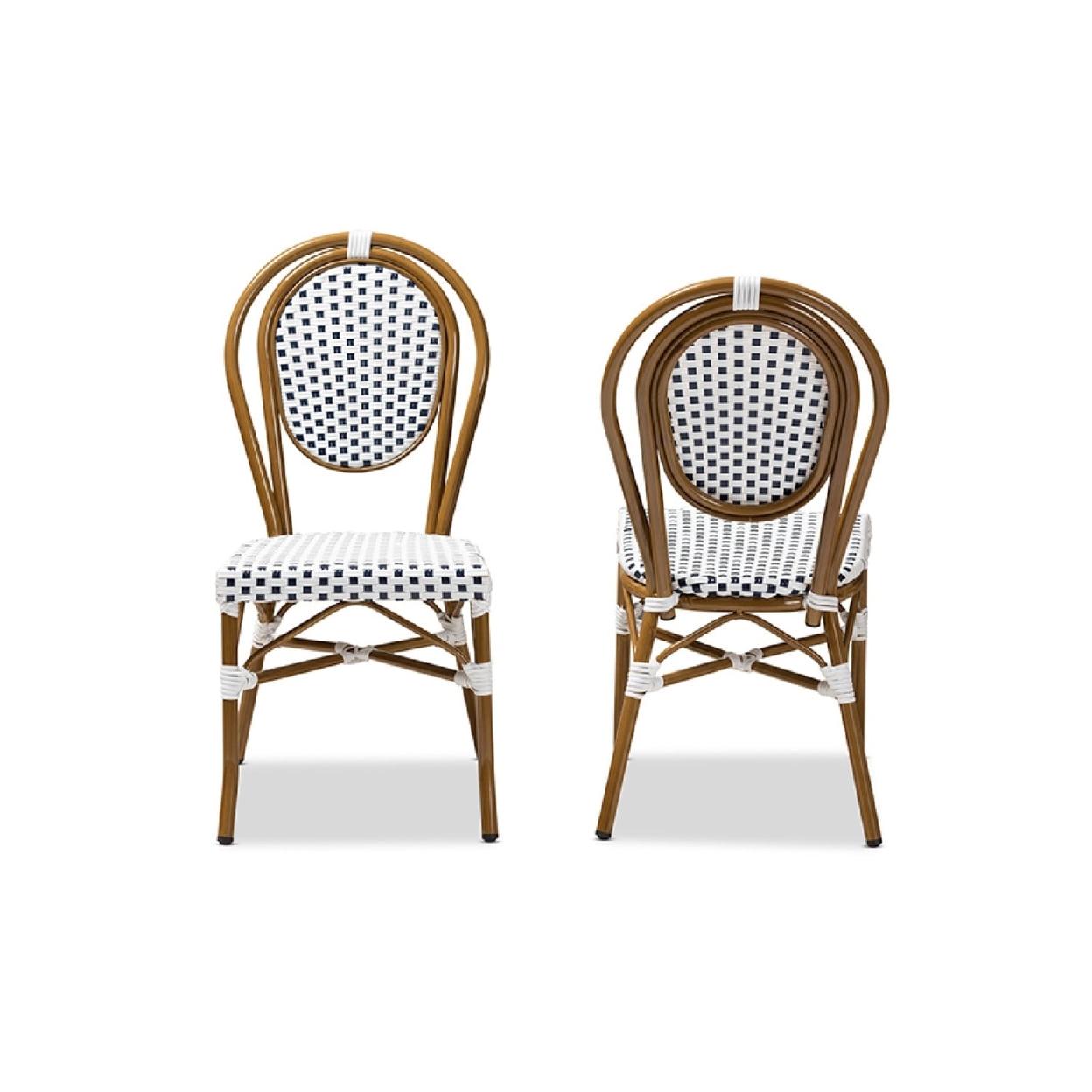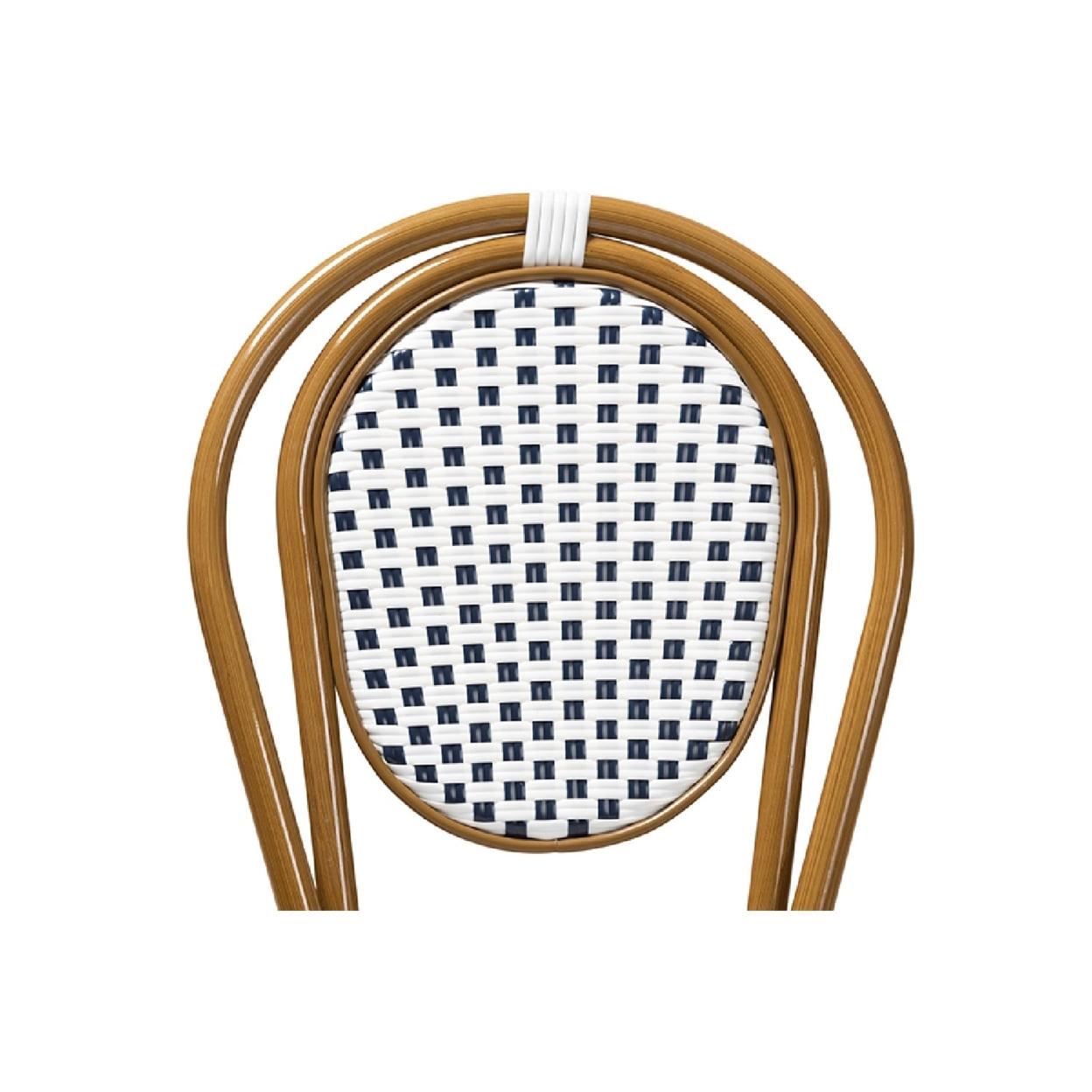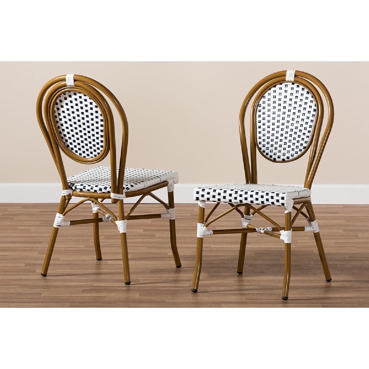 Baxton Studio Gauthier Classic French Indoor and Outdoor Navy and White Bamboo Style Bistro Stackable Dining Chair Set
