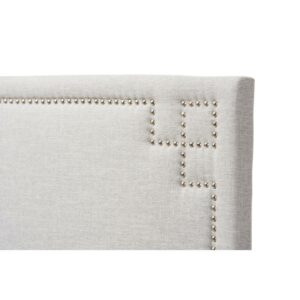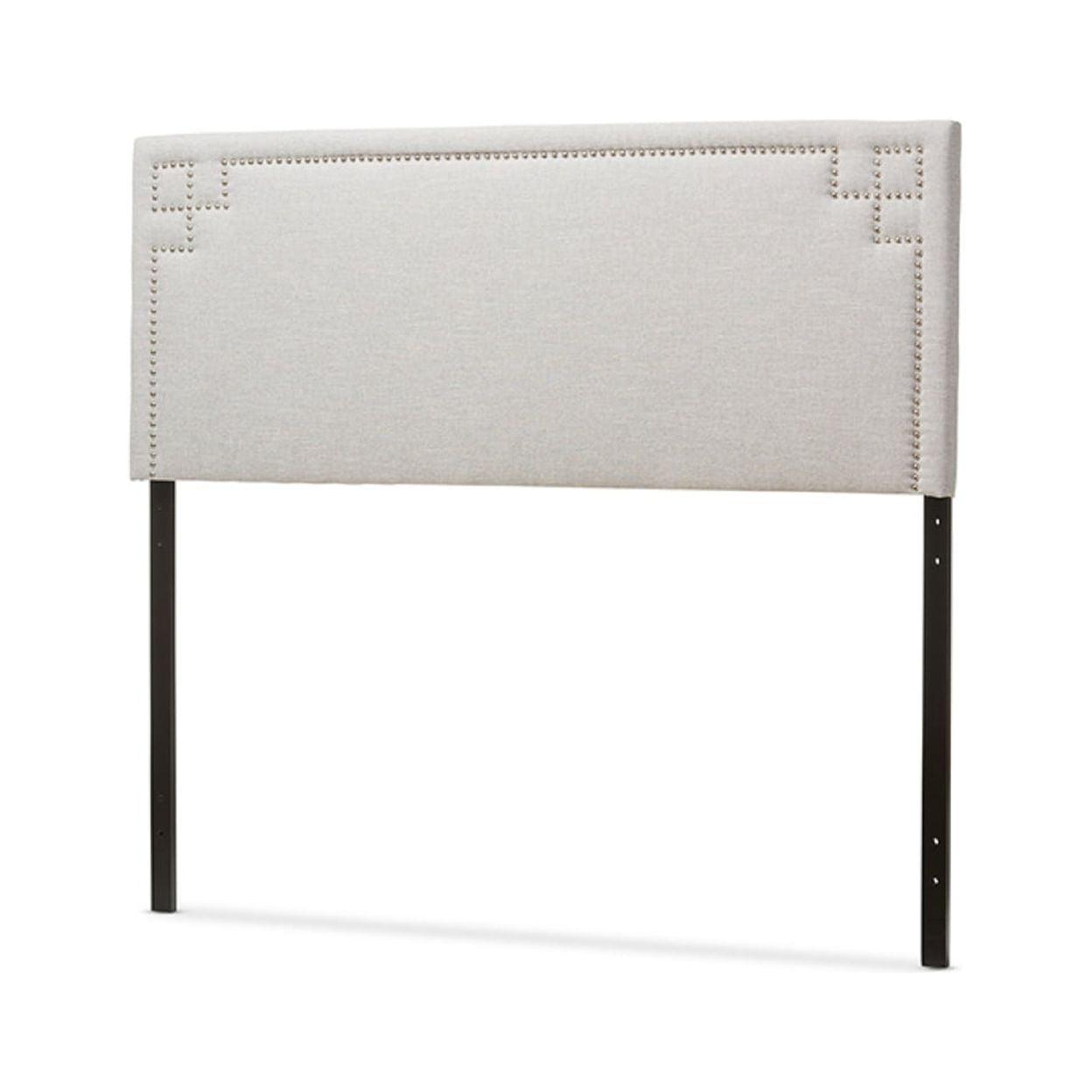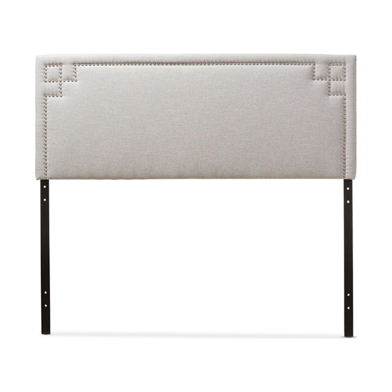 Baxton Studio Geneva Modern and Contemporary Grayish Beige Fabric Upholstered Full Size Headboard,Wholesale Interiors Add a touch of romance to the look and feel of your boudoir with the Geneva Upholstered Headboard. Featuring clean lines, subtle hues and chic, the Geneva headboard will create a handsome aesthetic in your bedroom interior. Constructed of solid rubberwood frame and plywood, the headboard is built to last. Soft polyester fabric in greyish beige over the foam filled headboard provides ample comfort for you to lean against. Leg supports are invisible once set up and can be adjusted to suit the height of your ensemble for convenience. Headboard sits between the wall and the ensemble frame, attaching not to the bed base but to the legs, for stability. Made in Malaysia, this full size headboard requires assembly.