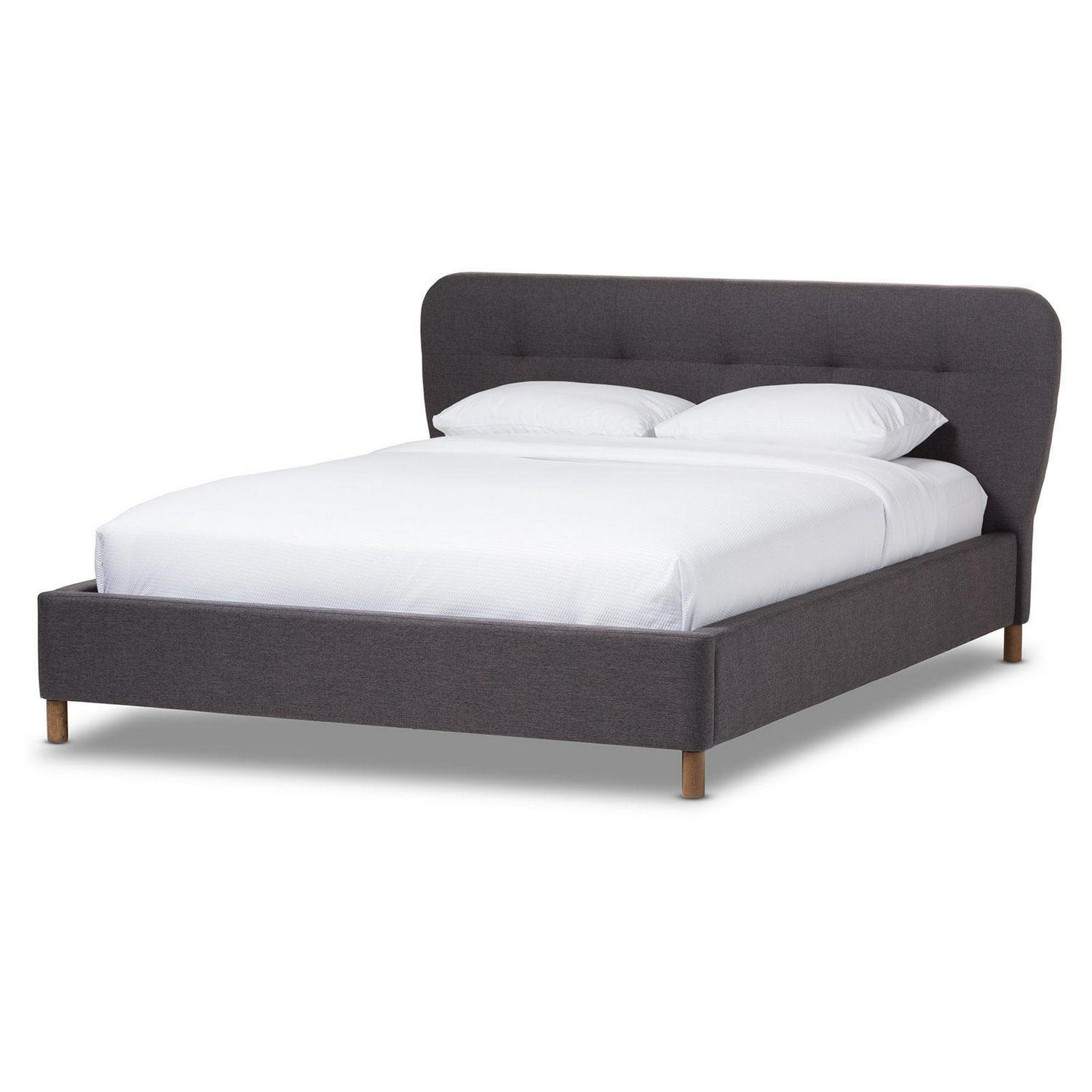 Baxton Studio Germaine Mid-Century Modern Fabric Grid-Tufting Platform Bed, Multiple Colors, Multiple Sizes