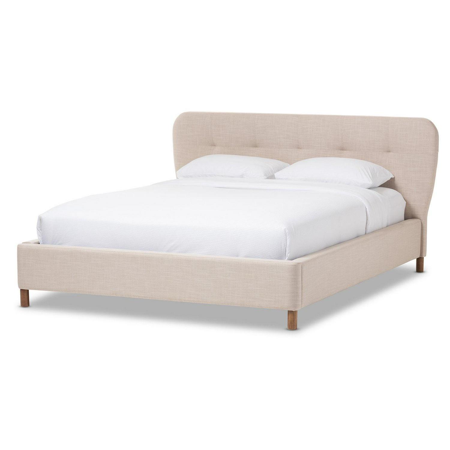 Rounded corners and tufted details make the Baxton Studio Germaine Linen Fabric Platform Bed a chic way to dress up your bedroom suite. For a good match to your bedroom, this platform bed is offered in your choice of available upholstery colors. It sits on wood post legs and includes a slat system that replaces traditional box springs. The bed is offered in your choice of available size.