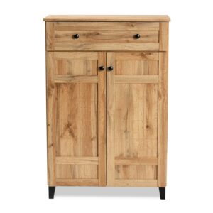 Baxton Studio Glidden Modern and Contemporary Oak Brown Finished Wood 1-Drawer Shoe Storage Cabinet