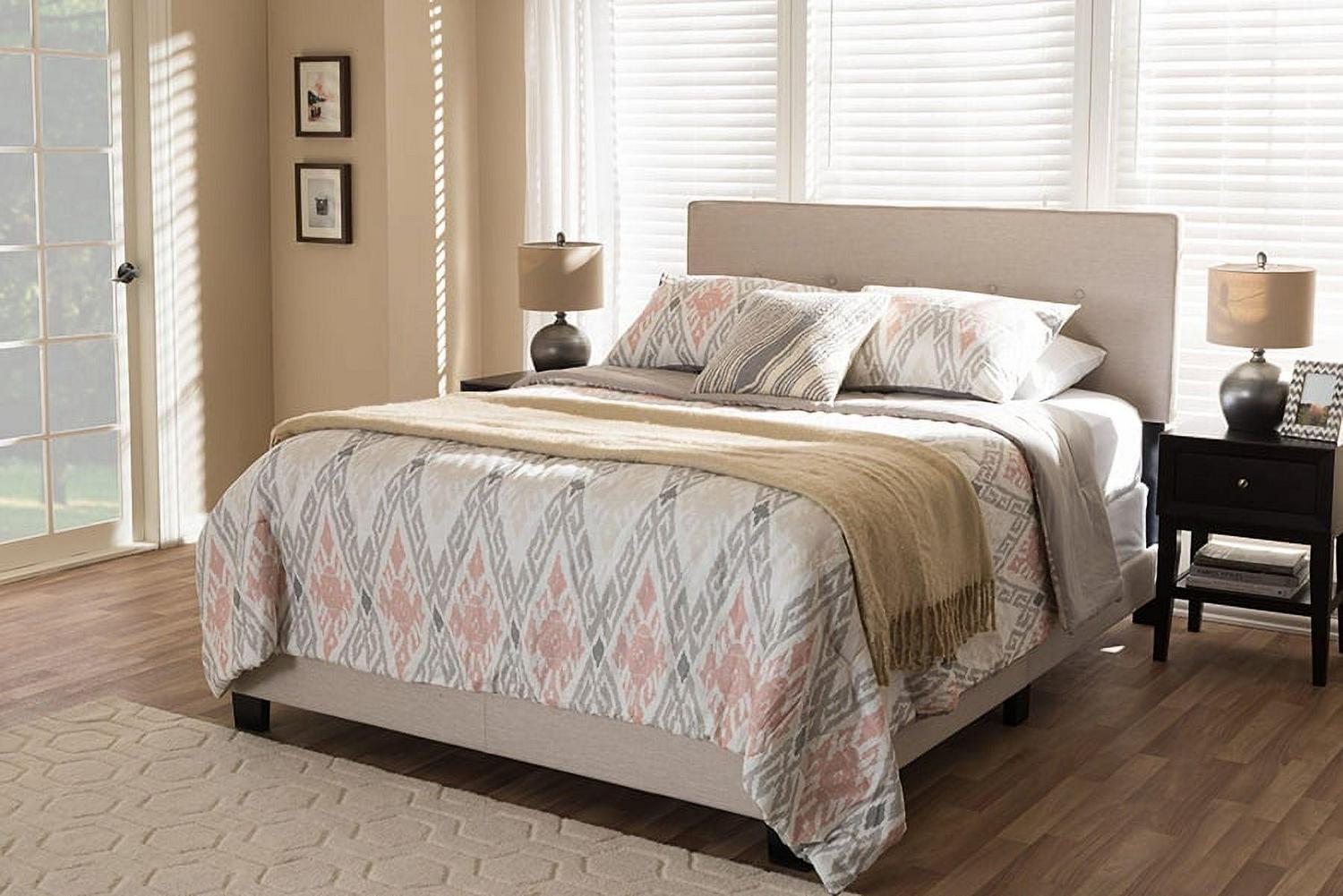 Baxton Studio Hampton Light Beige Fabric Upholstered King Size Bed