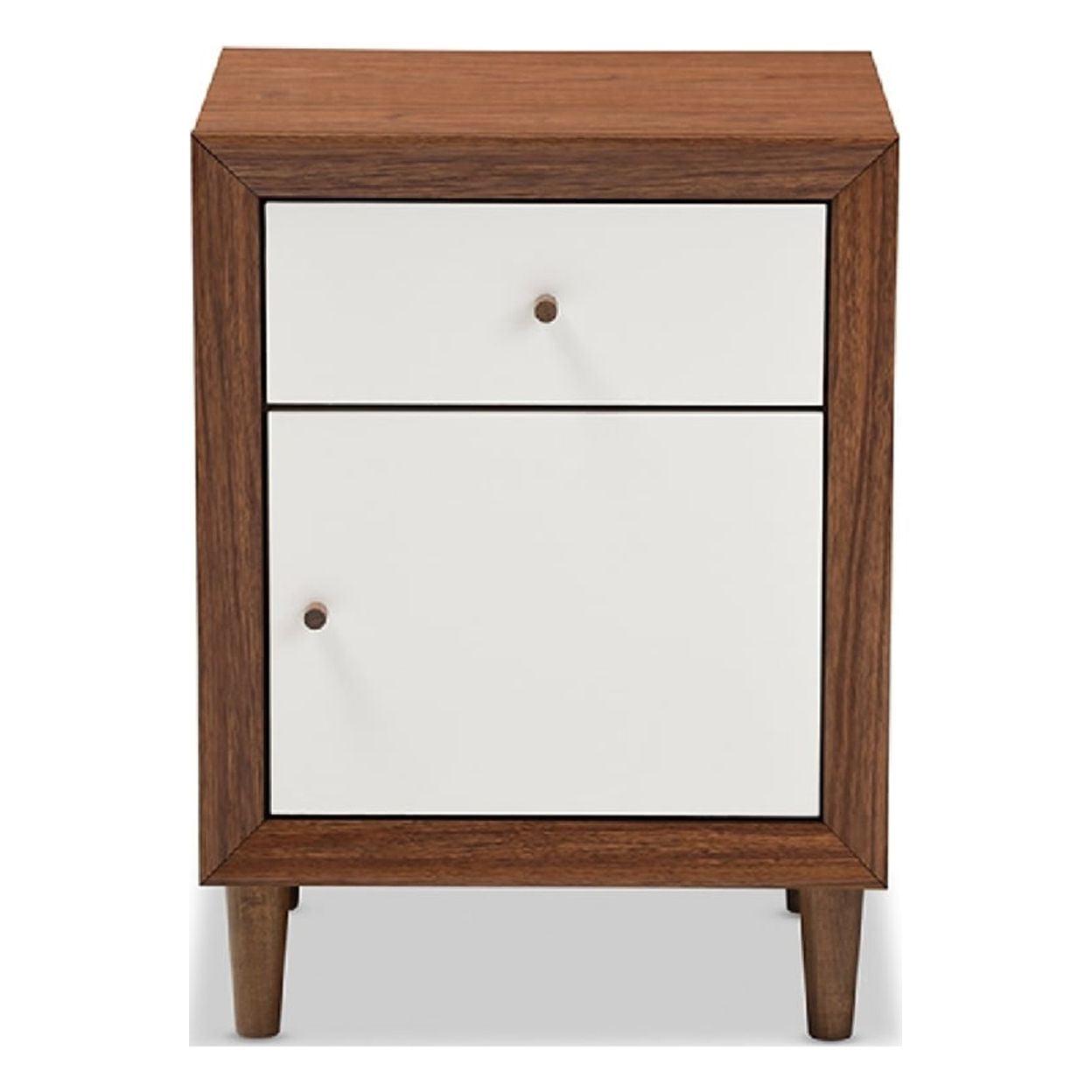 Baxton Studio Harlow Mid-century Modern Scandinavian Style White and Walnut Wood 1-drawer and 1-door Nightstand
