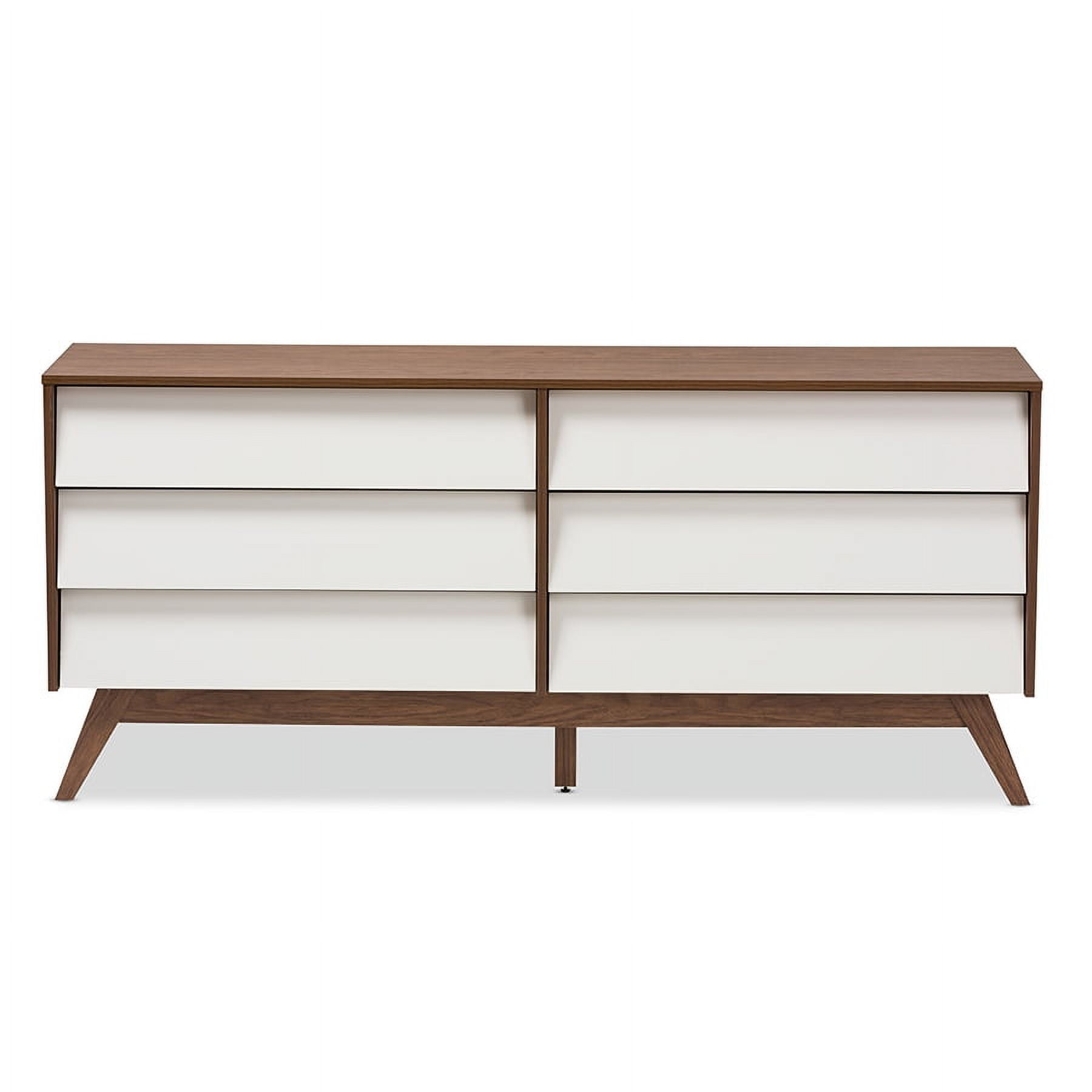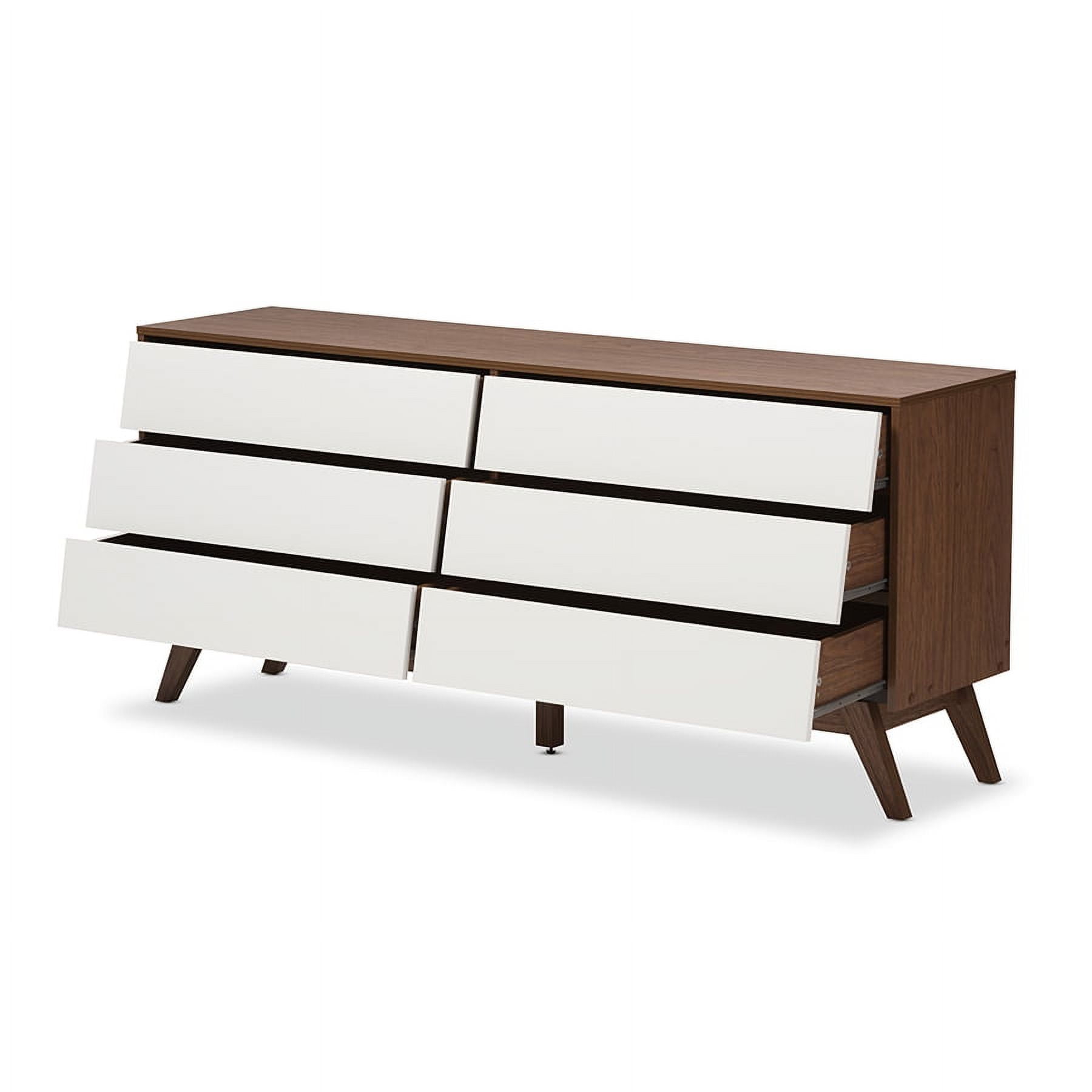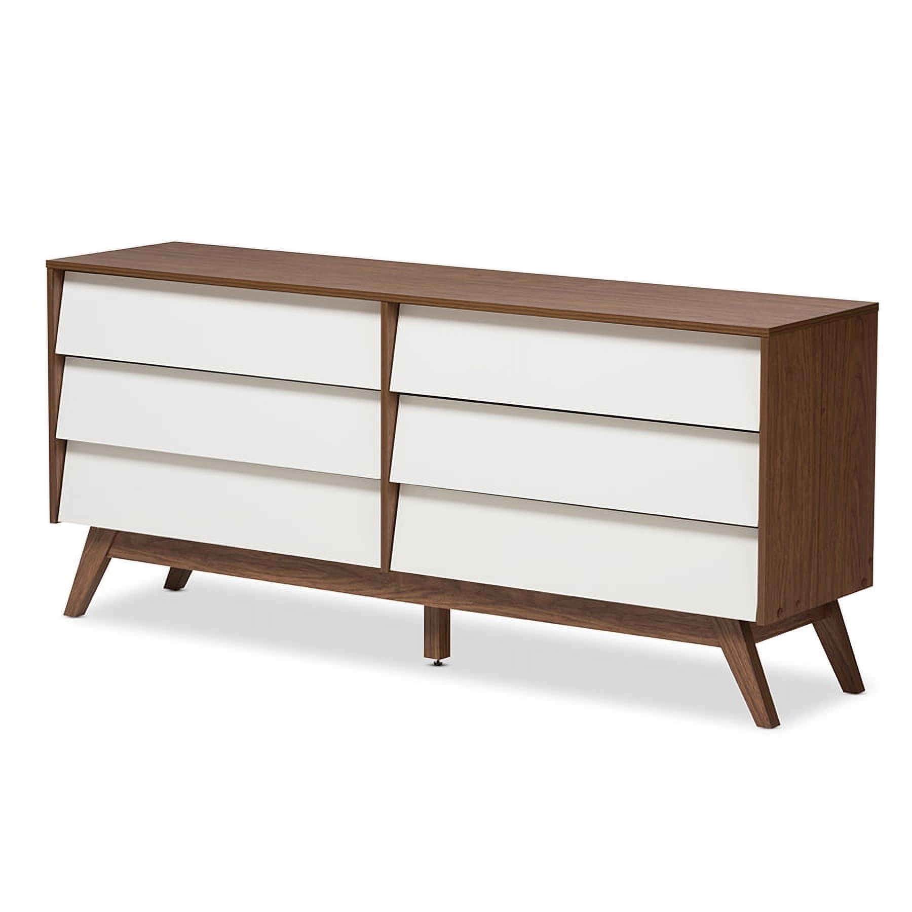 Baxton Studio Hildon Mid-Century Modern White and Walnut Wood 6-Drawer Storage Dresser