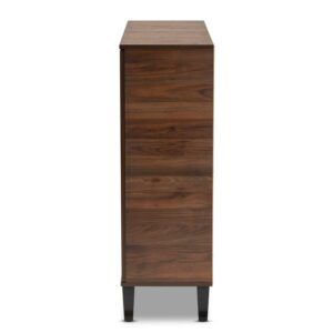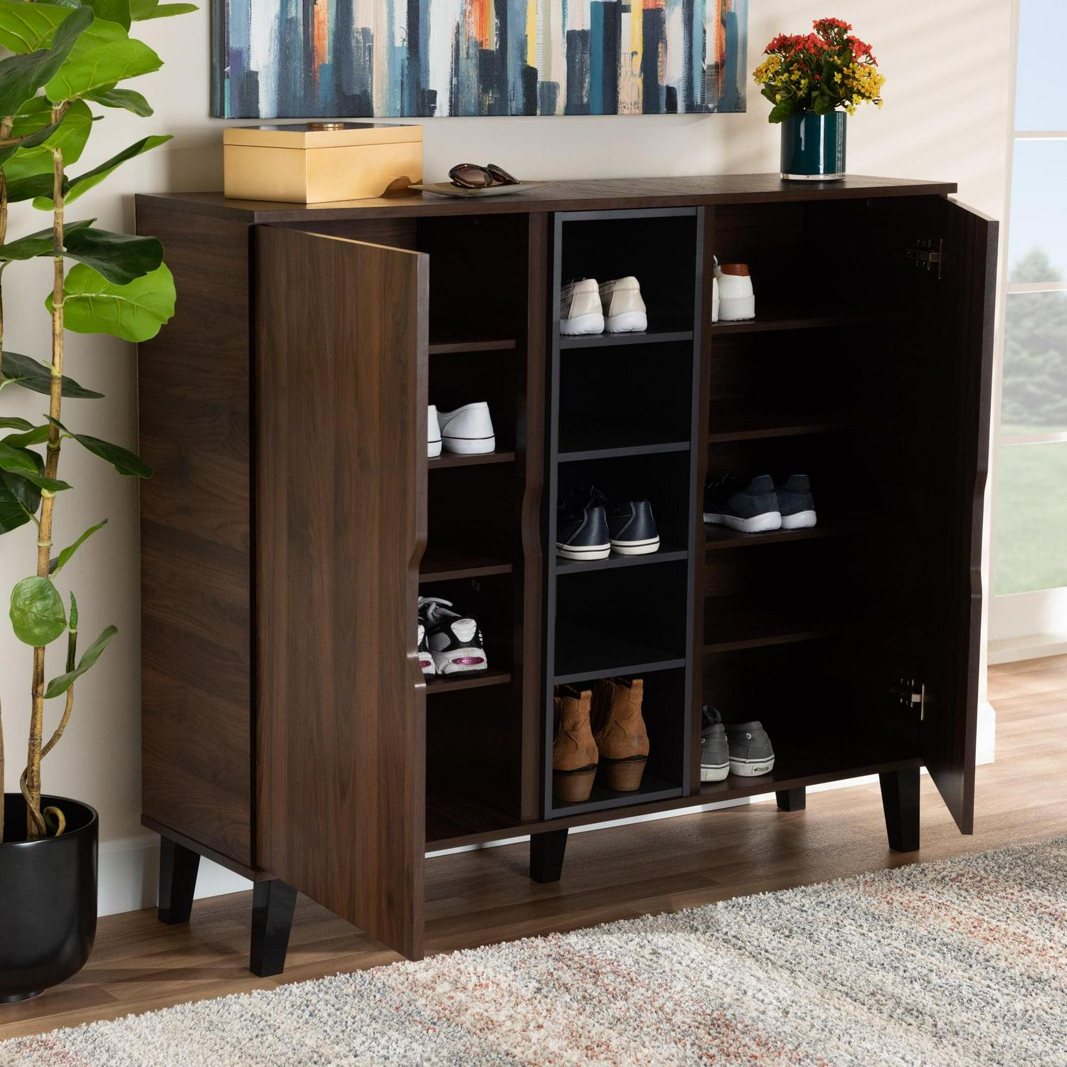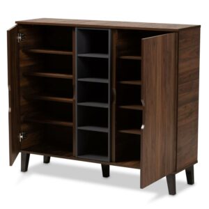 Baxton Studio Idina Mid-Century Modern Two-Tone Walnut Brown and Grey Finished Wood 2-Door Shoe Cabinet