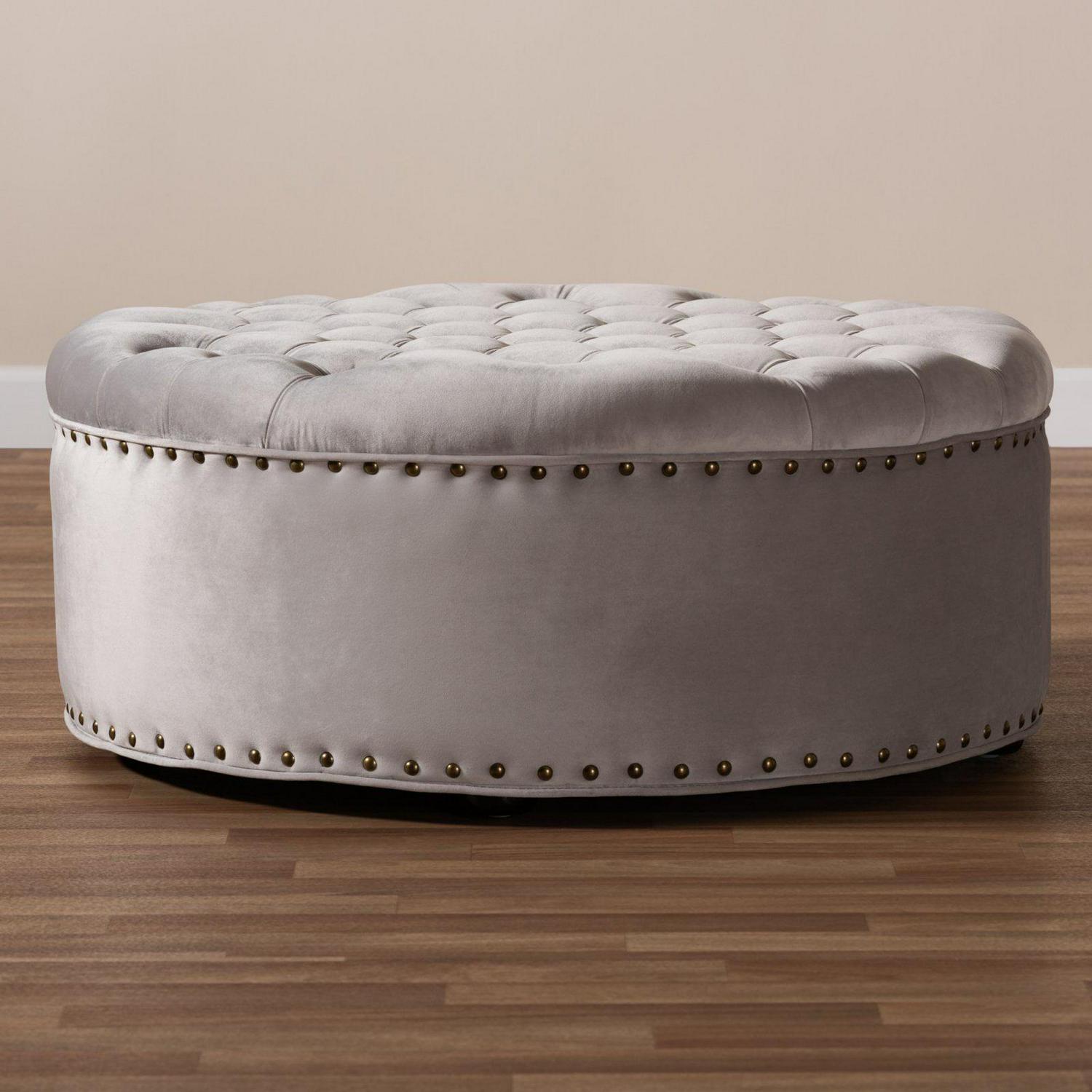 Baxton Studio Iglehart Modern and Contemporary Light Gray Velvet Fabric Upholstered Tufted Cocktail Ottoman