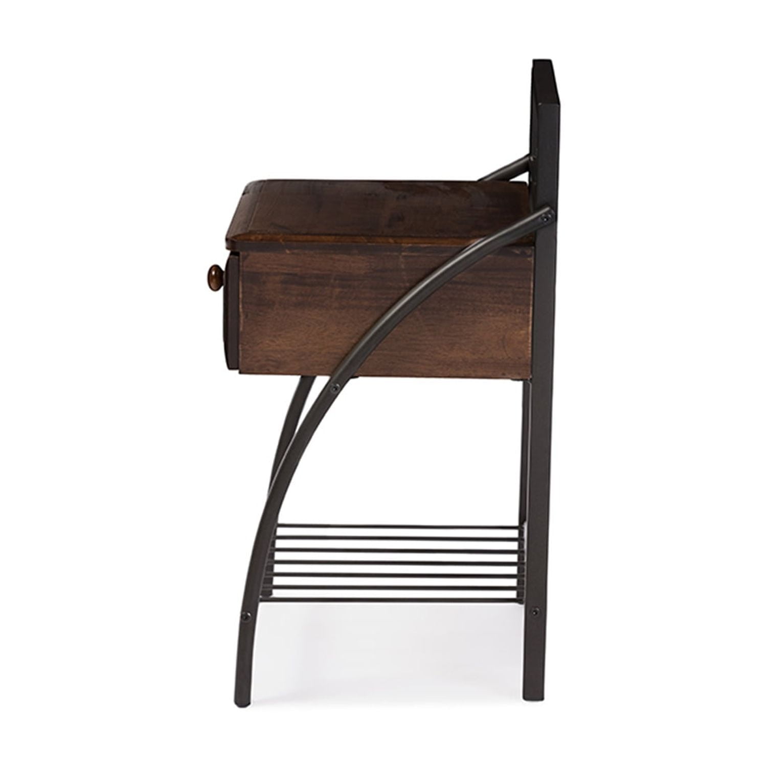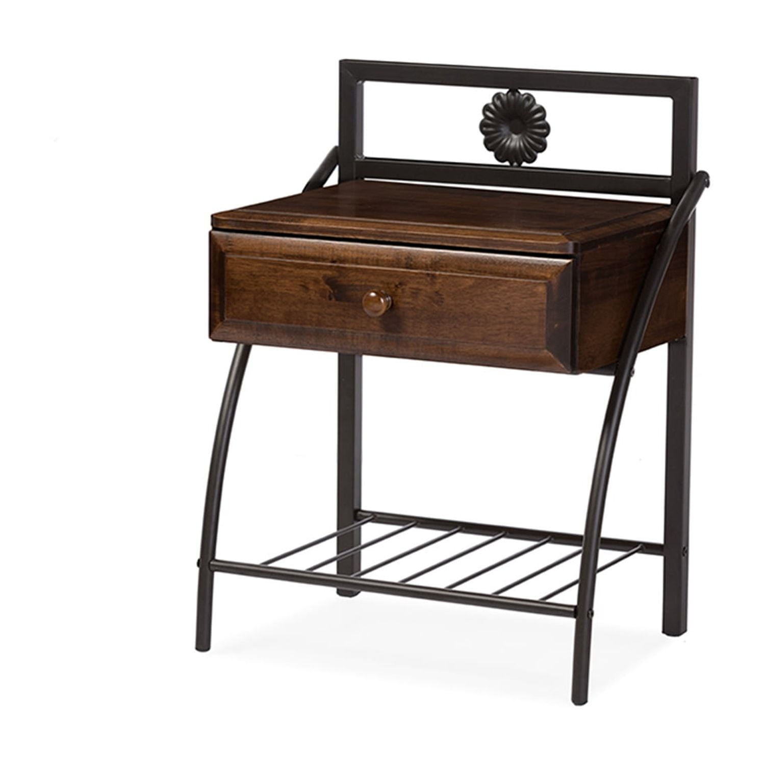 The perfect addition to your bedroom setting, this Jevenci vintage metal and wood nightstand with drawer and shelf is classically crafted for functionality. With one drawer for storage and open shelf, it could also be the perfect side table for your living room. Stylish furniture piece at an affordable price, this bedside table will suit the decor of any home. Solidly constructed of black finish powder coated metal frame and rubberwood top with MDF veneer, this nightstand or side table is the cost efficient way to decorate your home. Featuring vintage style, the Jevenci will be a good match for any home decor. Made in Malaysia, the Jevenci requires assembly.