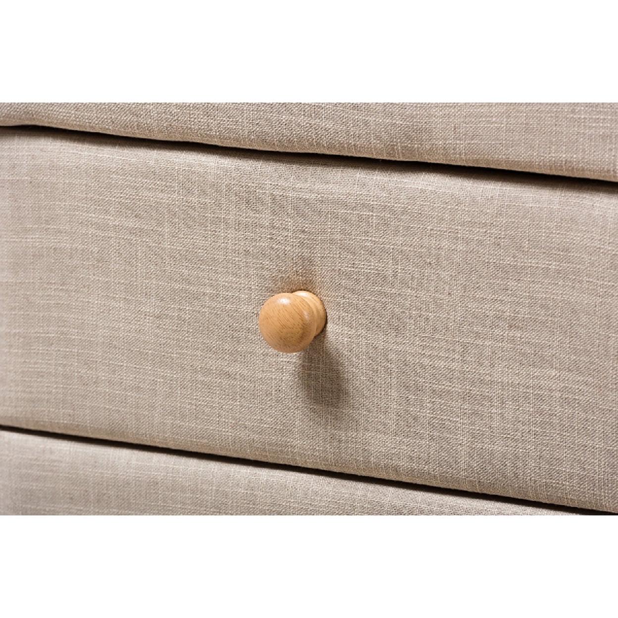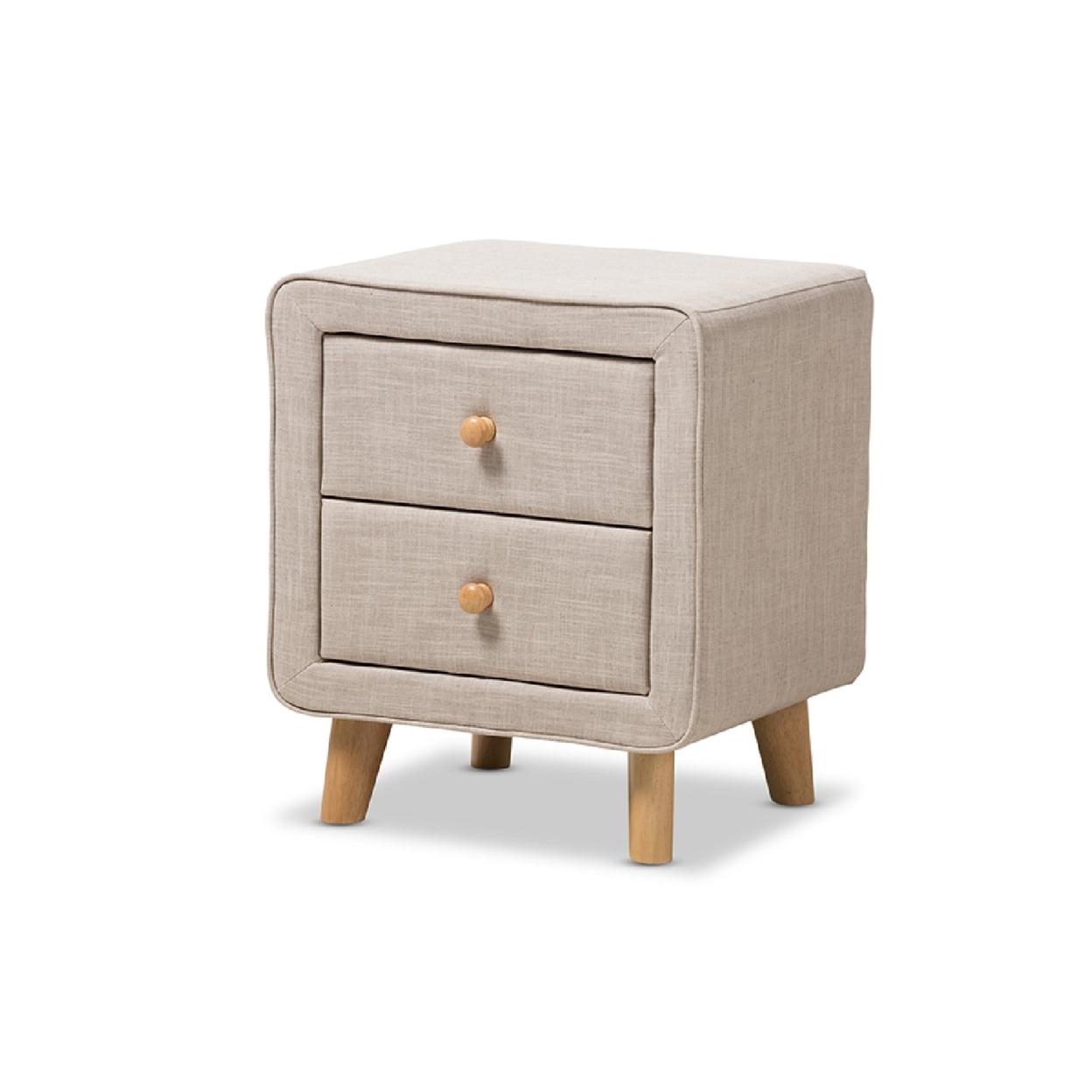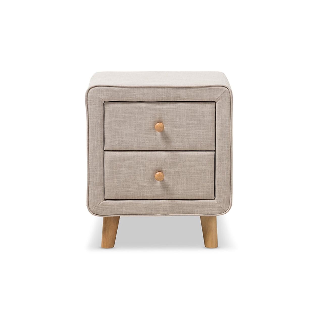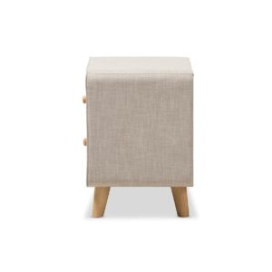 Baxton Studio Jonesy Mid-Century Beige Linen Upholstered 2-Drawer Nightstand