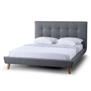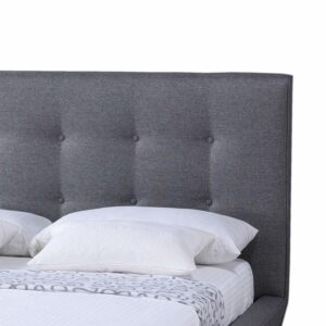Great design is defined by it’s ability to communicate style with the smallest amount of effort, and that’s what characterizes the Jonesy Scandinavian Style Mid-century Beige Linen Fabric Upholstered Platform Bed. Clean minimal design in beautiful linen fabrics! Made from hardwood, plywood and engineered wood, the Jonesy bed frame was built to be as sturdy as it is beautiful. The focus of the Jonesy is on clean, uncomplicated rounded lines crafted with the minimal of fuss. Versatile and very much on trend! Button-tufting design on the headboard and the rounded shape of footboard and side rails add a touch of luxury and playfulness all at the same time. The natural finishing wood legs are tapered and skewed outward, balancing the overall mid-century look of this platform base bed frame. Made in Malaysia, the bed requires assembly.