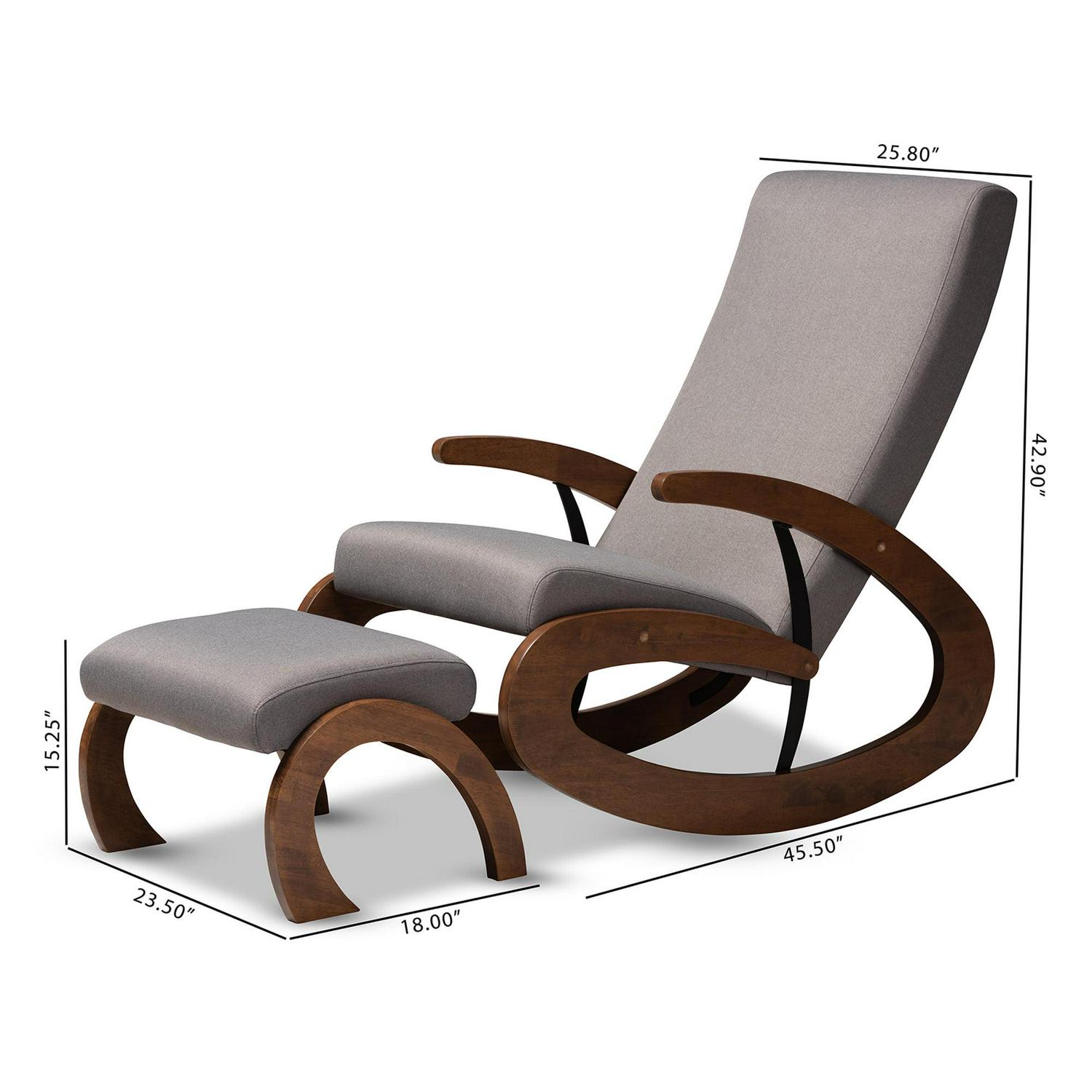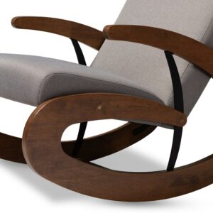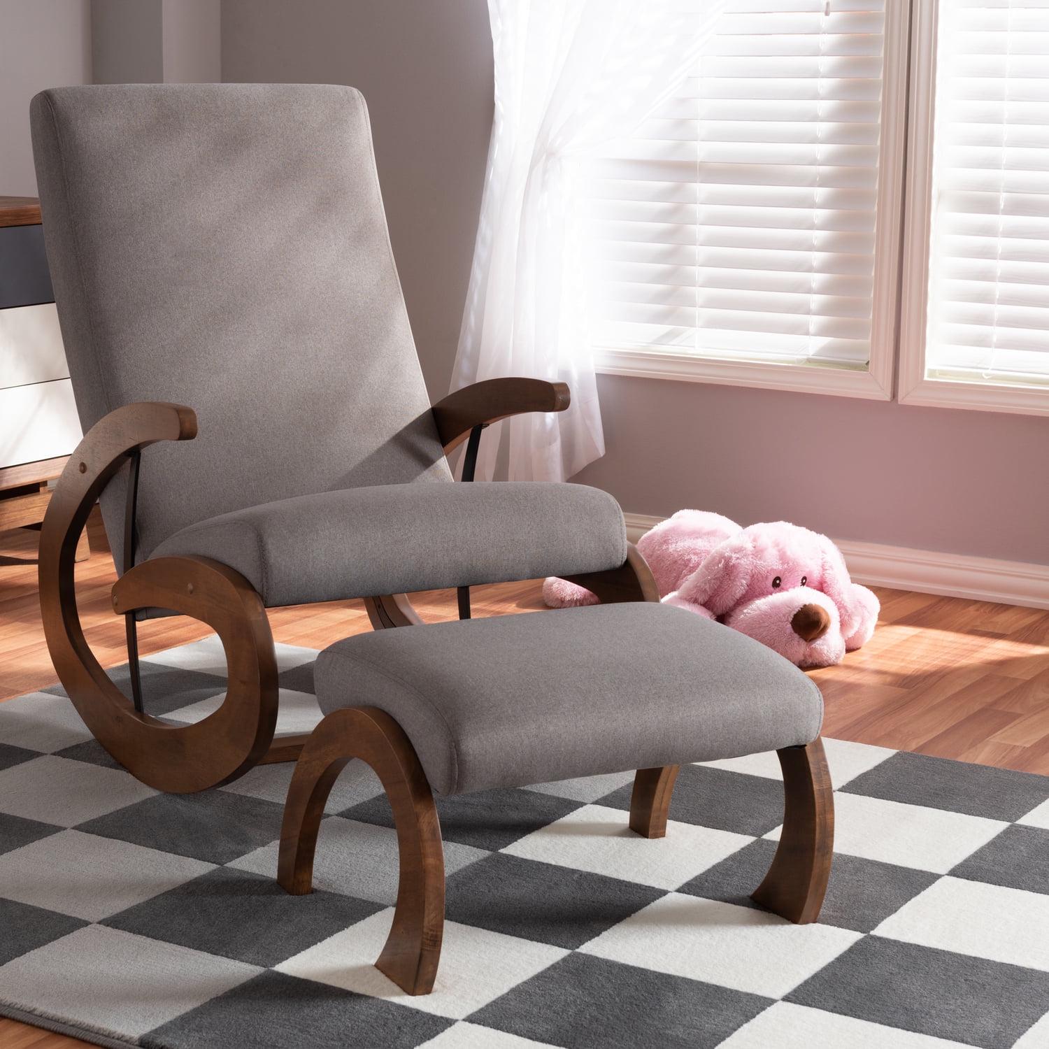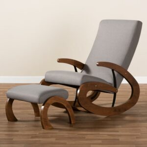 Baxton Studio Kaira Modern and Contemporary 2-Piece Gray Fabric Upholstered and Walnut-Finished Wood Rocking Chair and Ottoman Set