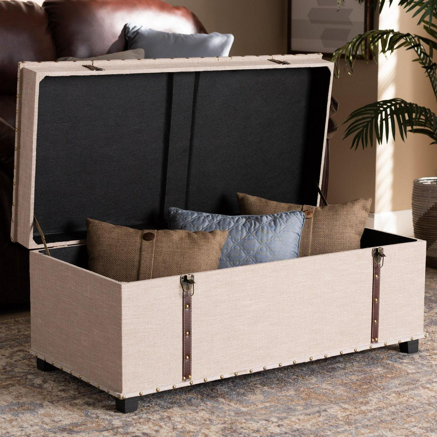 Baxton Studio Kyra Modern and Contemporary Beige Fabric Upholstered Storage Trunk Ottoman