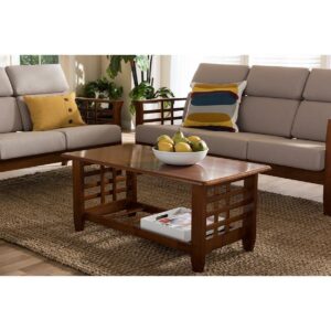 Baxton Studio Larissa Modern Classic Mission Style Cherry Finished Brown Wood Living Room Occasional Coffee Table