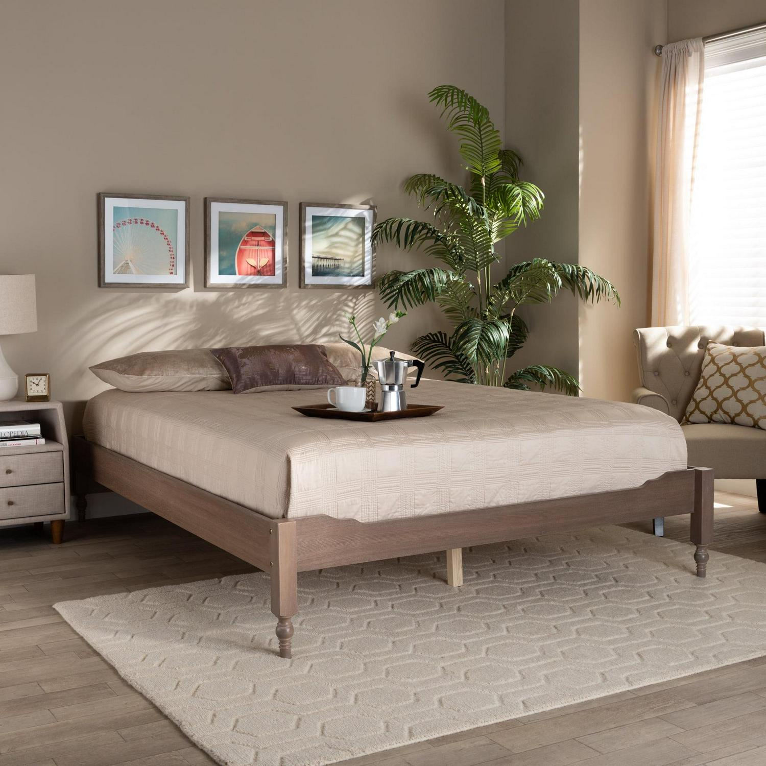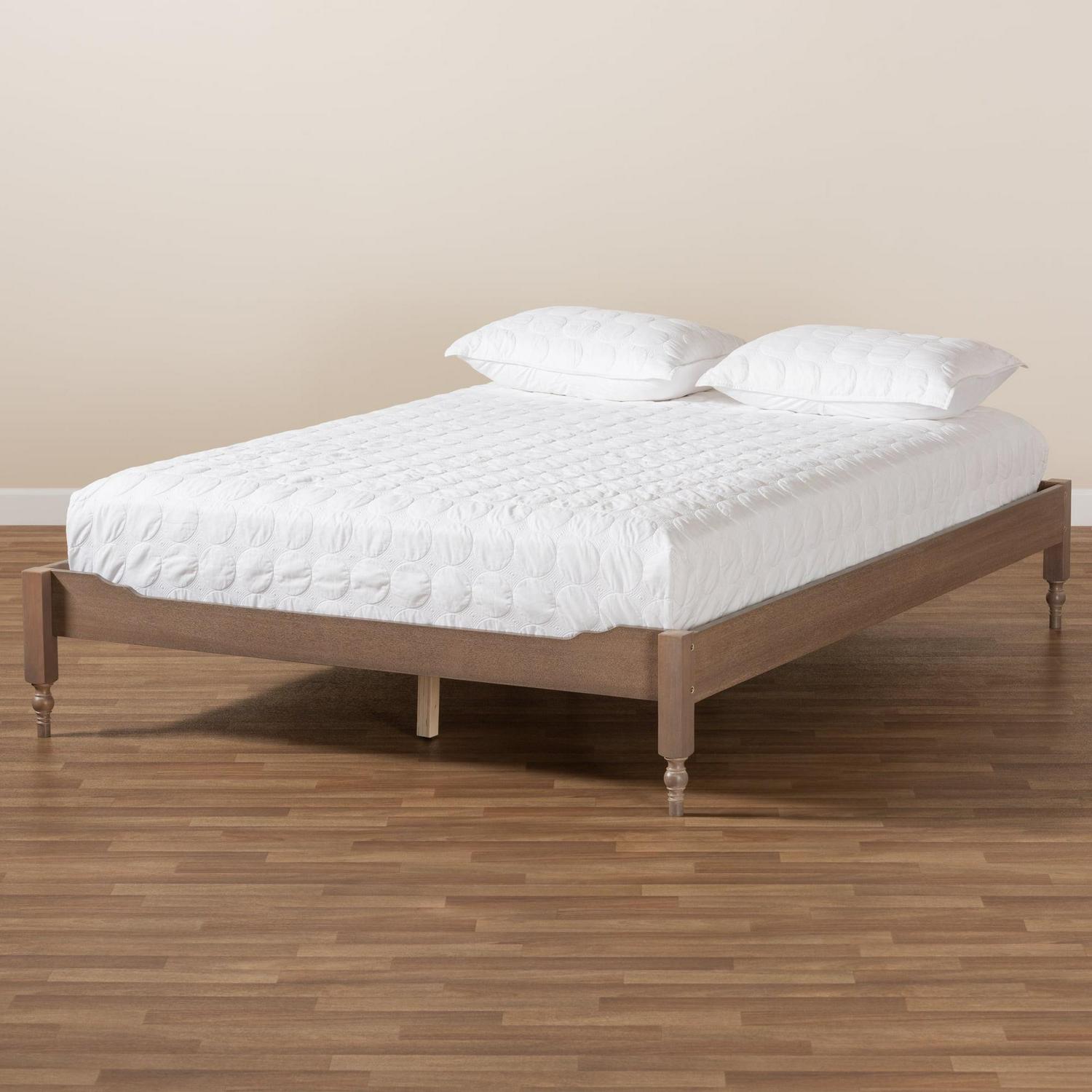 Baxton Studio Laure French Bohemian Antique Oak Finished Wood Full Size Platform Bed Frame