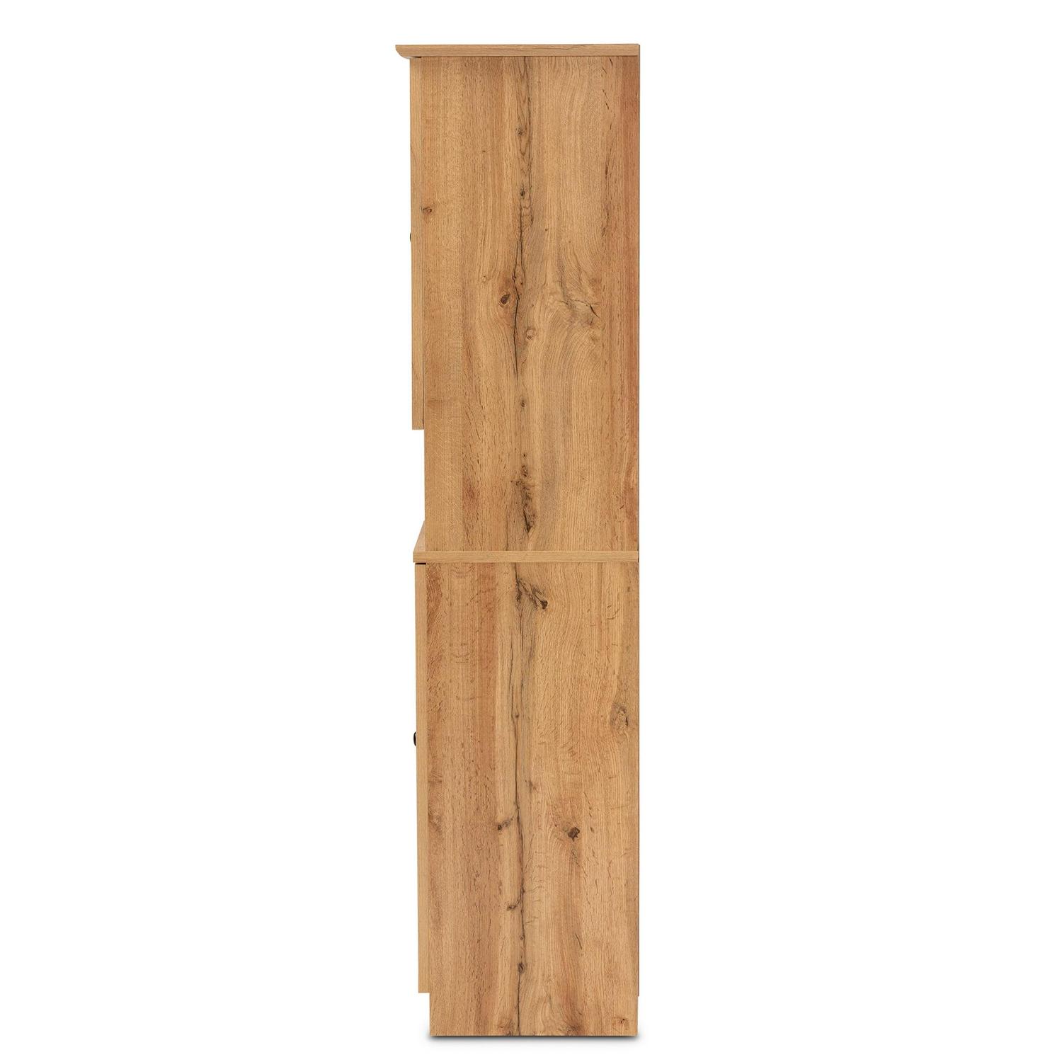 Baxton Studio Lauren Modern and Contemporary Oak Brown Finished Wood Buffet and Hutch Kitchen Cabinet