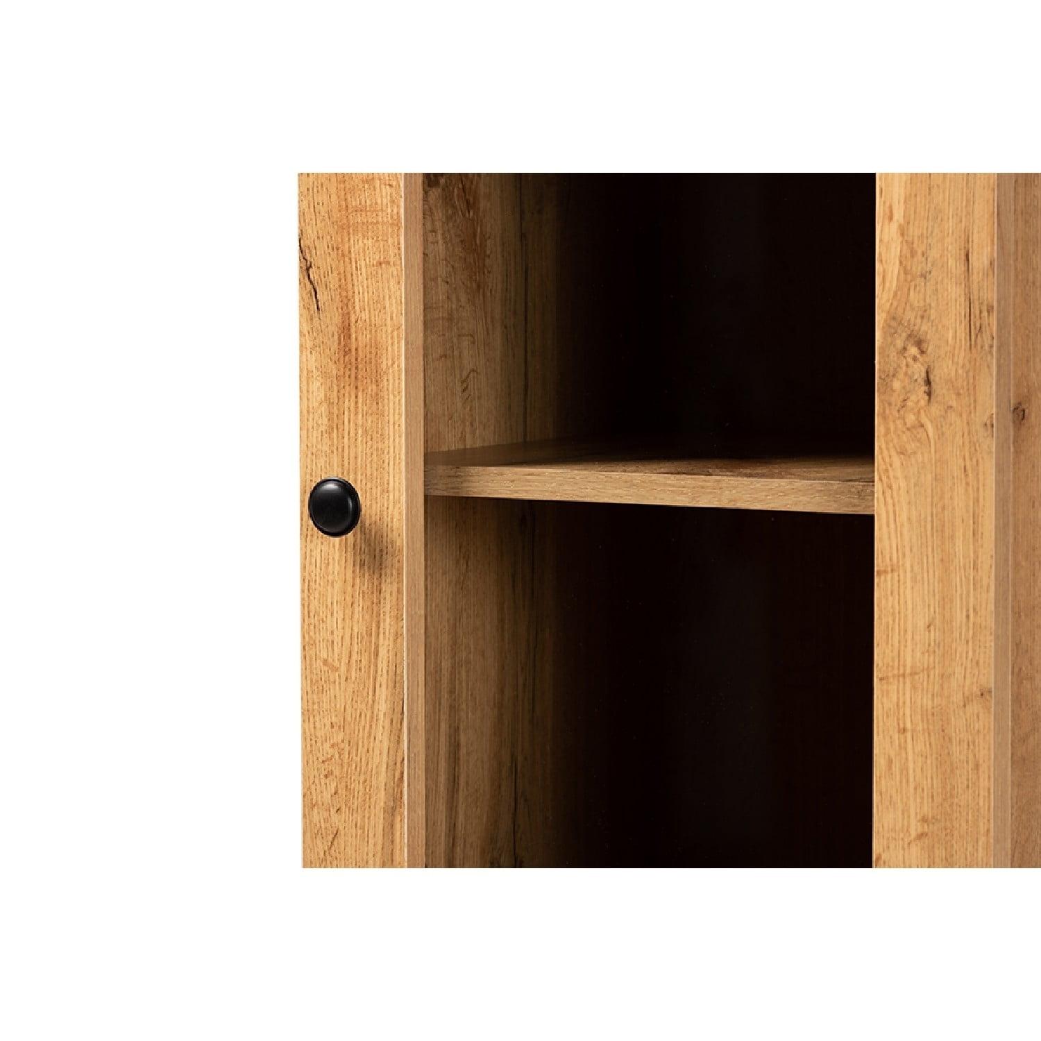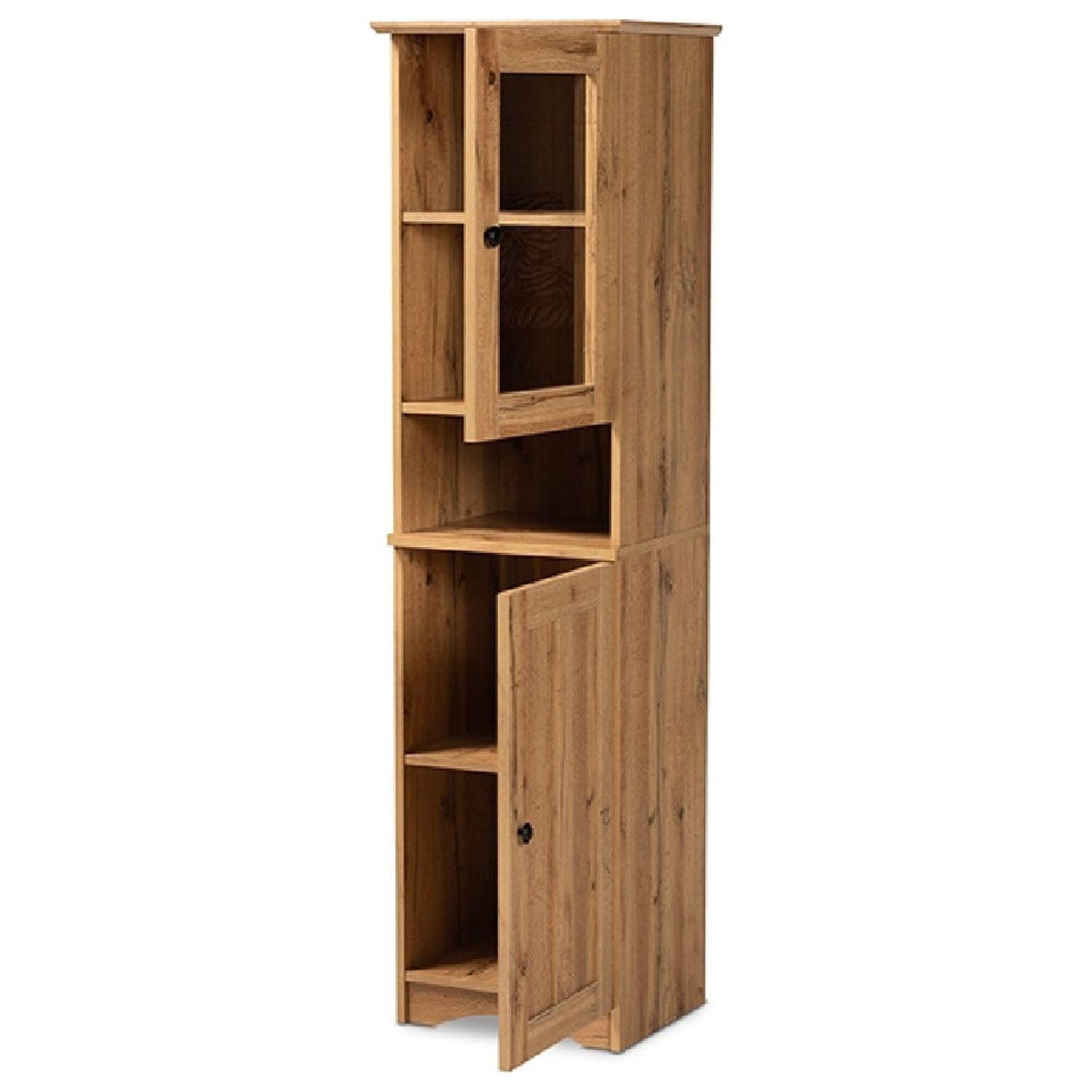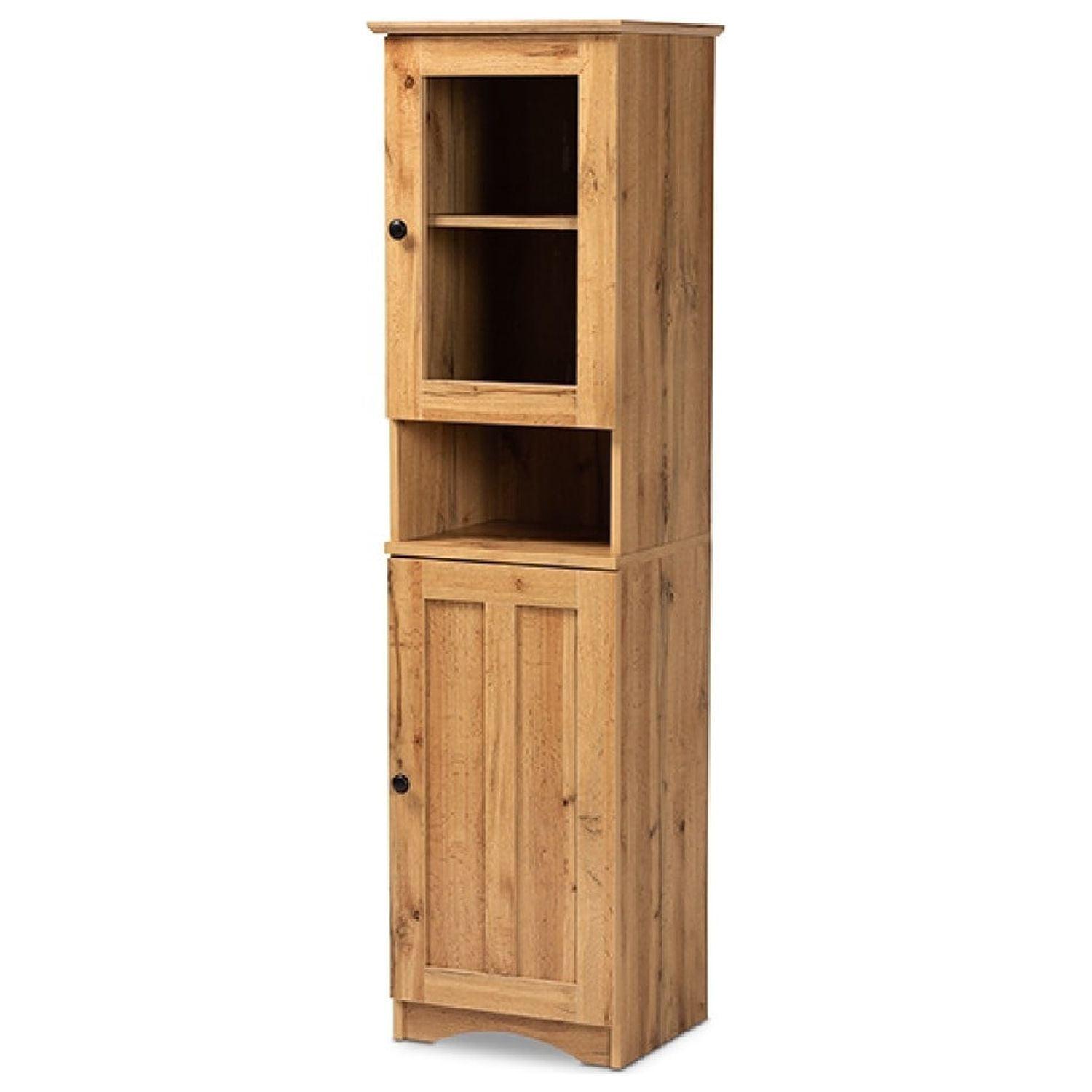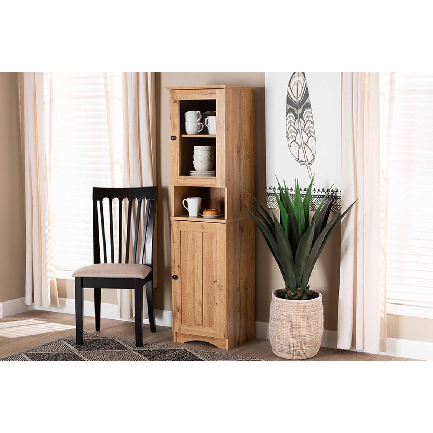 Baxton Studio Lauren Modern and Contemporary Oak Brown Finished Wood Buffet and Hutch Kitchen Cabinet Grace your dining room with the clean, luxurious look of the Lauren cabinet. Made in Malaysia, this cabinet is constructed from sturdy wood featuring a natural oak brown finish for a timeless display that complements a wide range of interior designs. Two shelves behind the glass door create a convenient display for dishware, while two additional shelves behind the lower door provide space for large cookware. Requiring assembly, the Lauren is equipped with an open shelf to keep kitchen essentials on hand. With superb storage in a sleek, streamlined design, the Lauren cabinet elevates the efficiency of the modern kitchen.