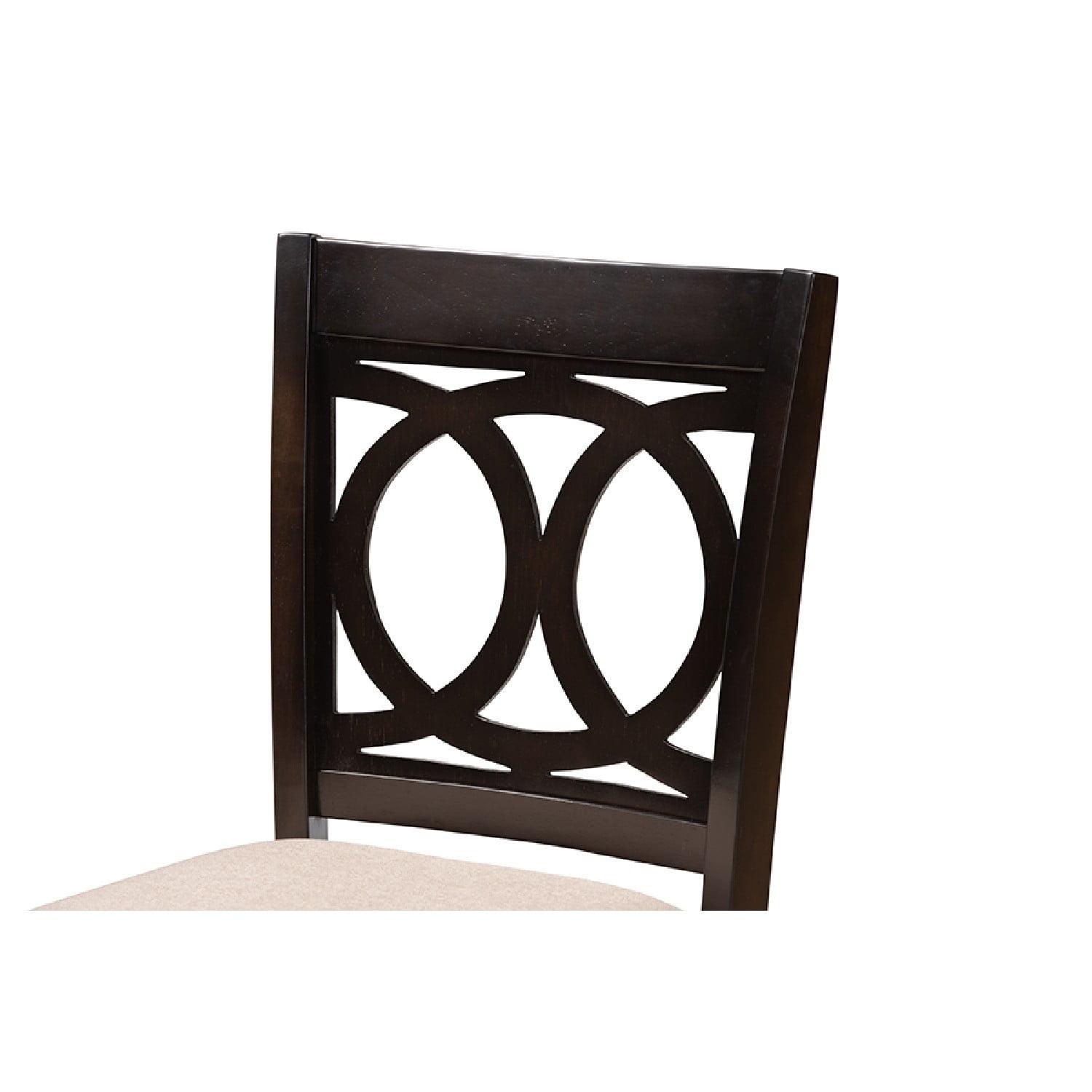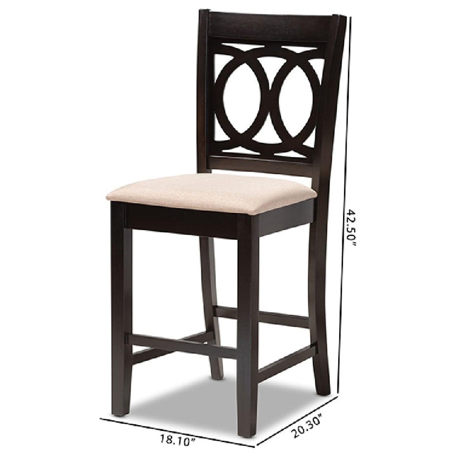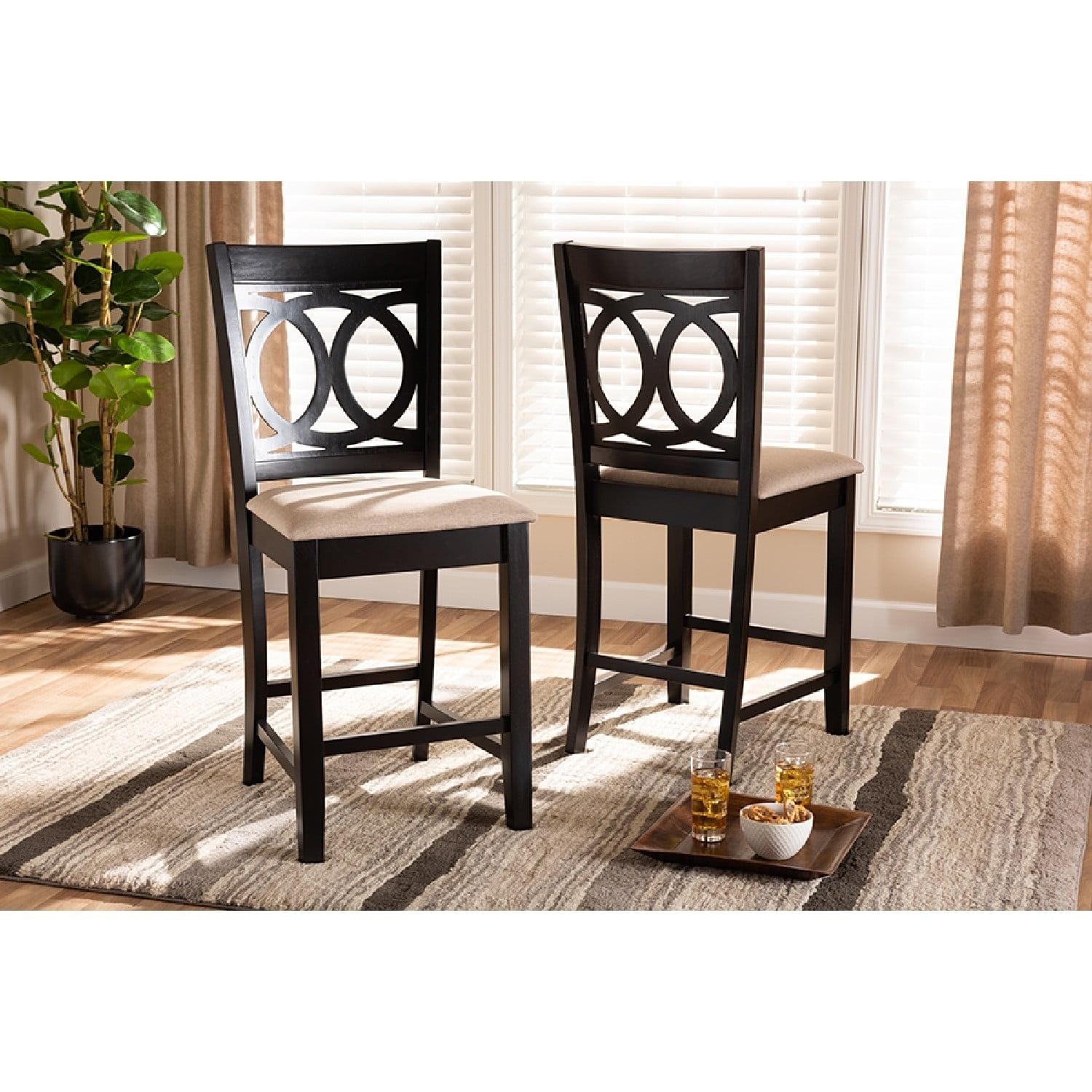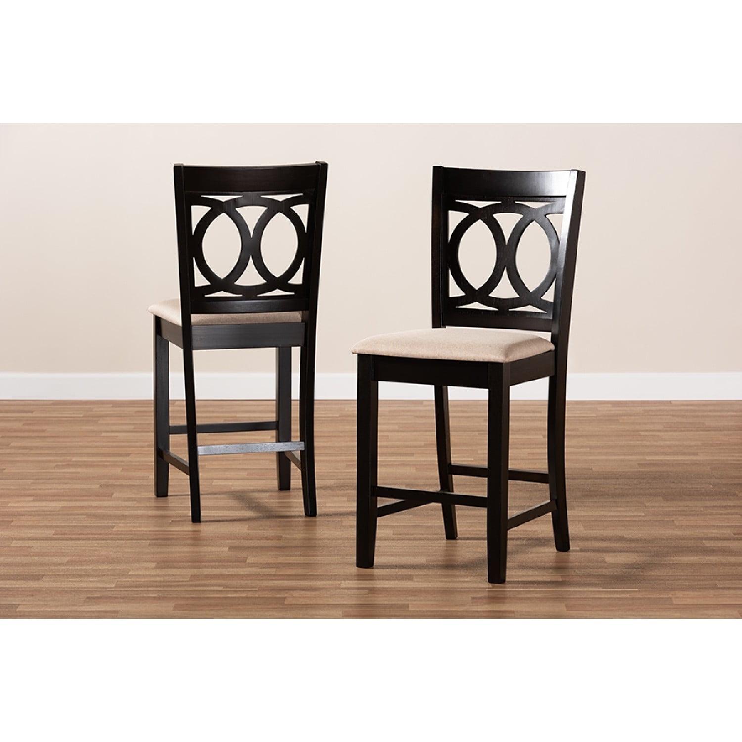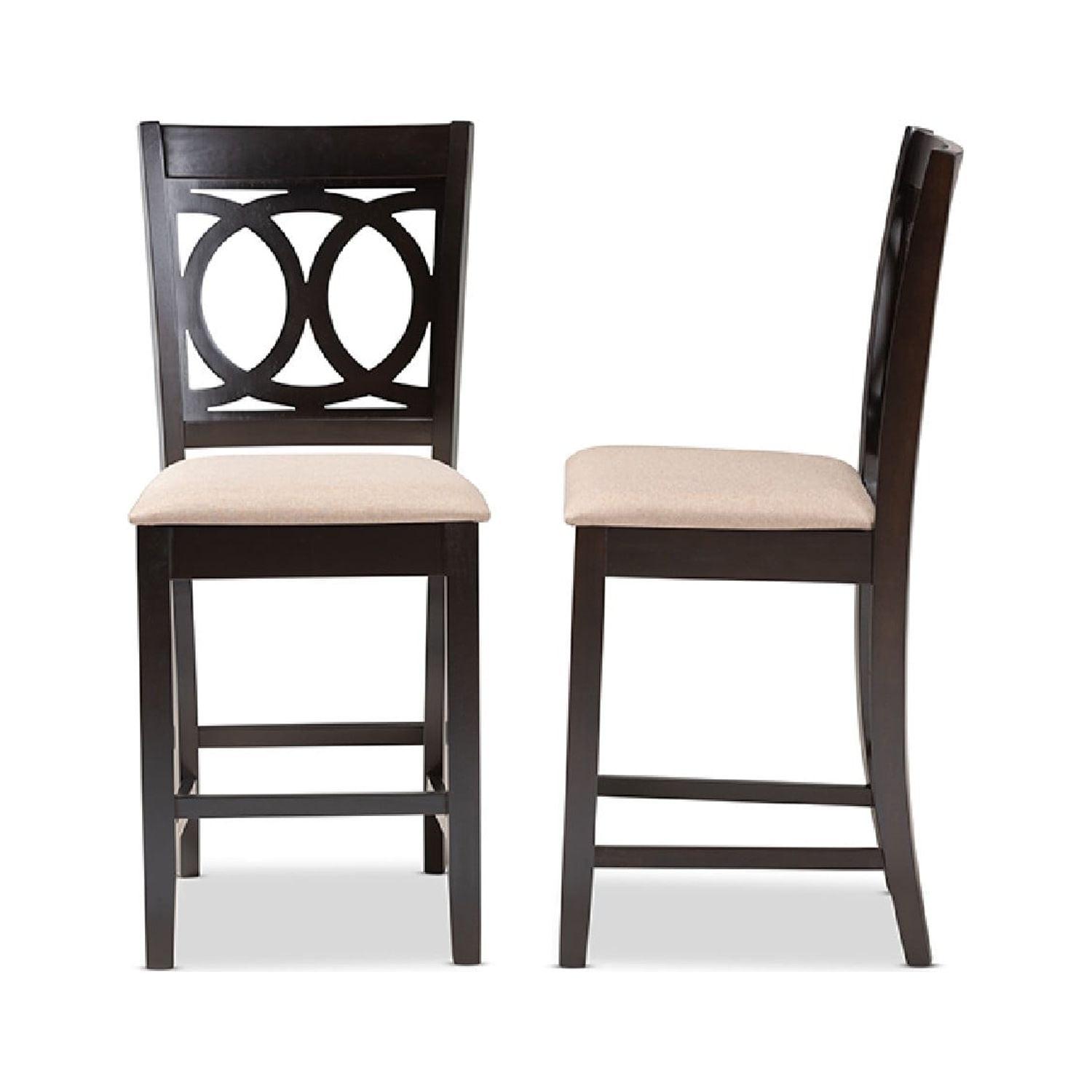 Baxton Studio Lenoir Modern and Contemporary Sand Fabric Upholstered Espresso Brown Finished Wood Counter Height Pub A fusion of traditional design elements and modern craftsmanship make the Lenoir pub chair a stunning addition to any dining space. This solid rubberwood chair features a sleek espresso brown finish that complements the light polyester fabric upholstery. Padded with foam for the utmost comfort as you enjoy long dinners, the Lenoir features a striking cut-out back for enhanced visual appeal. Comfortable and stylish, the Lenoir is suitable for use with pub tables and kitchen counters. The Lenoir pub chair is made in Malaysia and requires assembly.