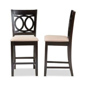 Baxton Studio Lenoir Modern and Contemporary Sand Fabric Upholstered Espresso Brown Finished Wood Counter Height Pub