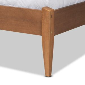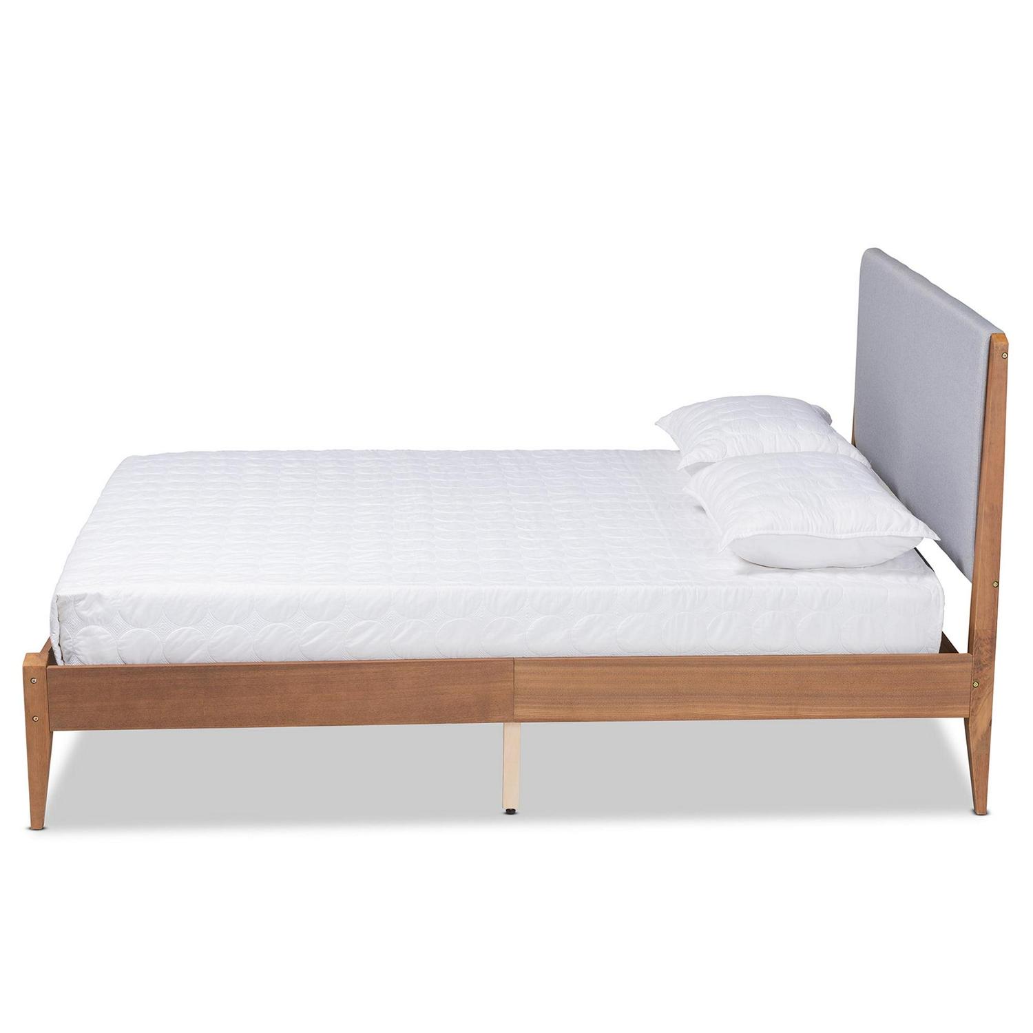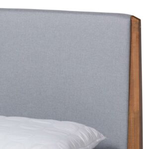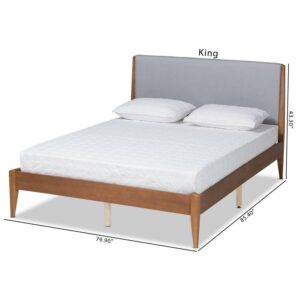 Baxton Studio Lenora Mid-Century Modern Grey Fabric Upholstered and Walnut Brown Finished Wood King Size Platform Bed
