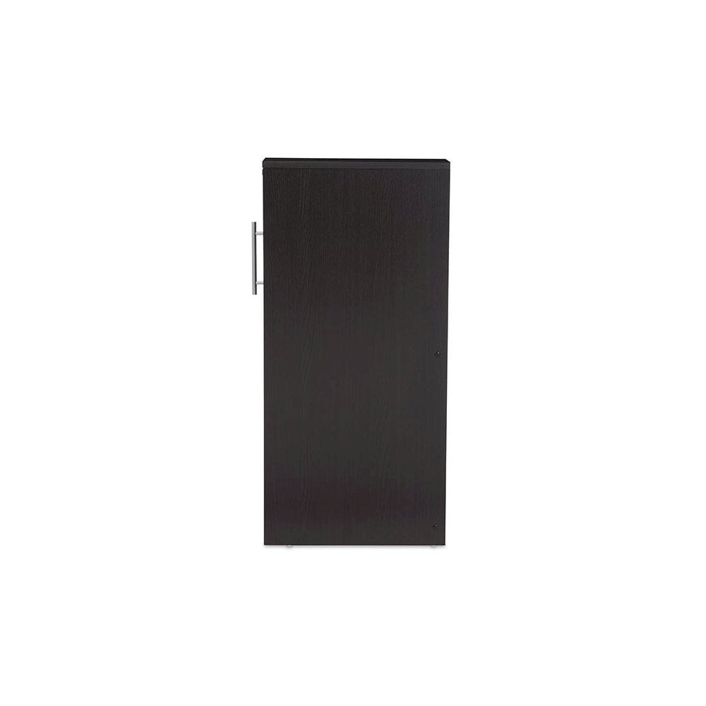 Baxton Studio Lindo Dark Brown Wood Bookcase with One Pulled-out Door Shelving Cabinet