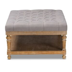 Baxton Studio Lindsey Modern and Rustic Grey Linen Fabric Upholstered and Greywashed Wood Cocktail Ottoman