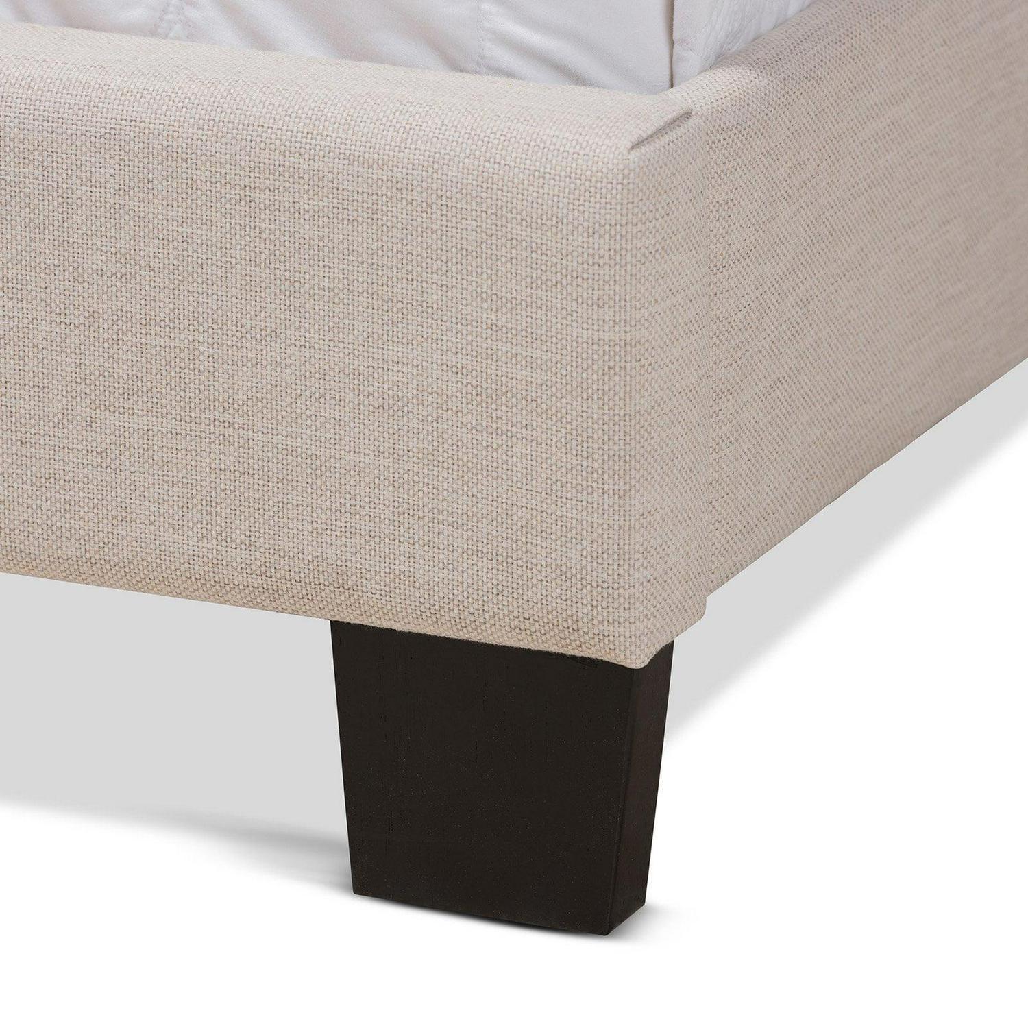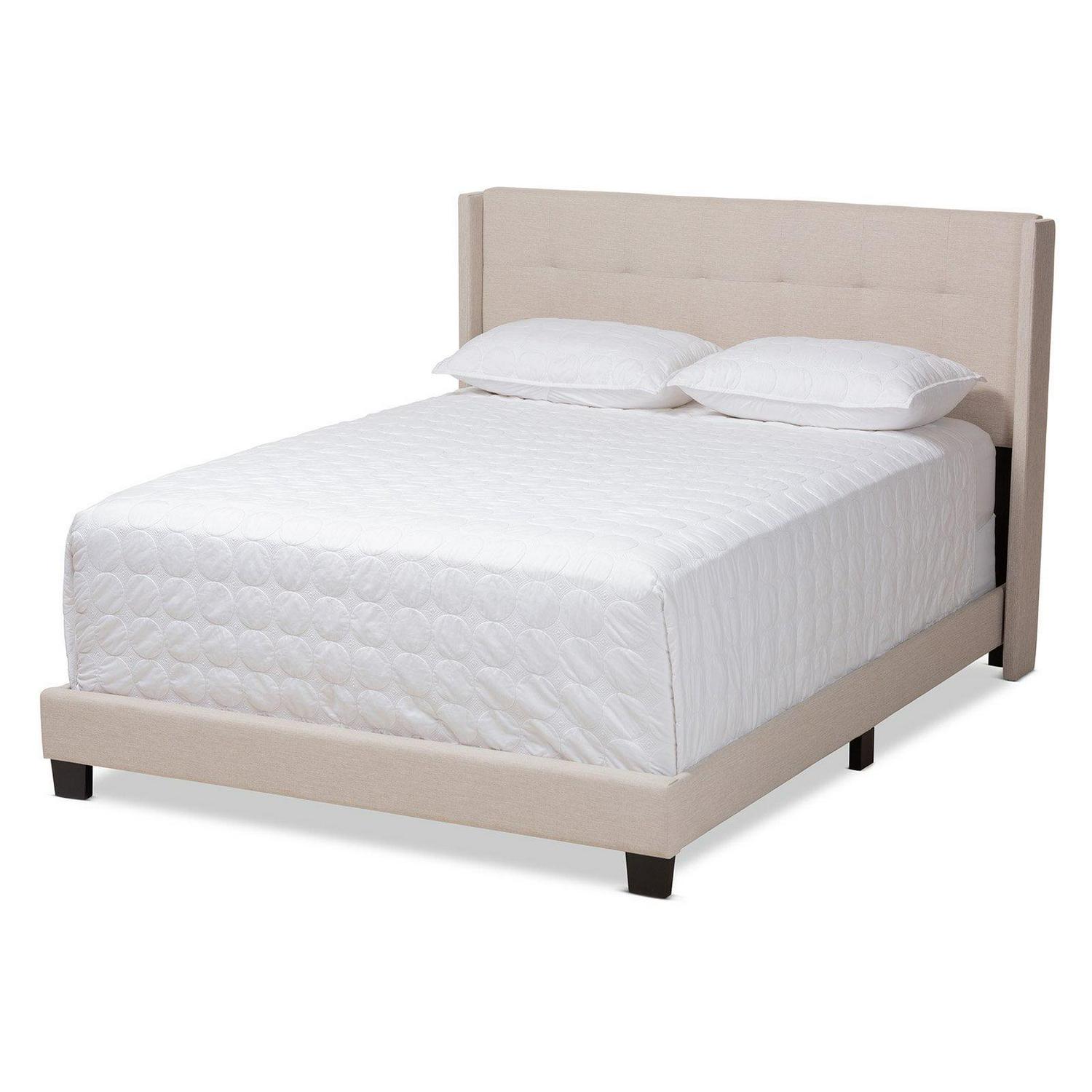 Baxton Studio Lisette Modern and Contemporary Charcoal Grey Fabric Upholstered Queen Size Bed Create an aura of modern luxury and comfort in your bedroom with the Lisette upholstered bed. Constructed from MDF wood, the Lisette is padded with foam for the highest level of comfort. The bed showcases elegant neutral fabric upholstery that is easy to coordinate with a wide range of color palettes. Designed with both style and practicality in mind, the bed features grid-patterned stitching for contemporary appeal, as well as solid rubberwood legs that provide elevation for easy dusting. Complete the look with a set of crisp white sheets and a plush duvet. A box spring and mattress are required for use. The Lisette upholstered bed is made in Malaysia and requires assembly. All parts are zipped within the headboard.