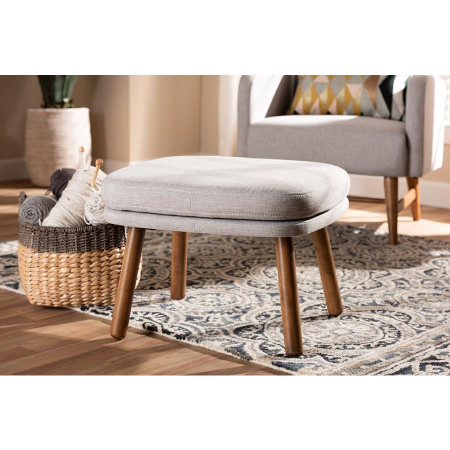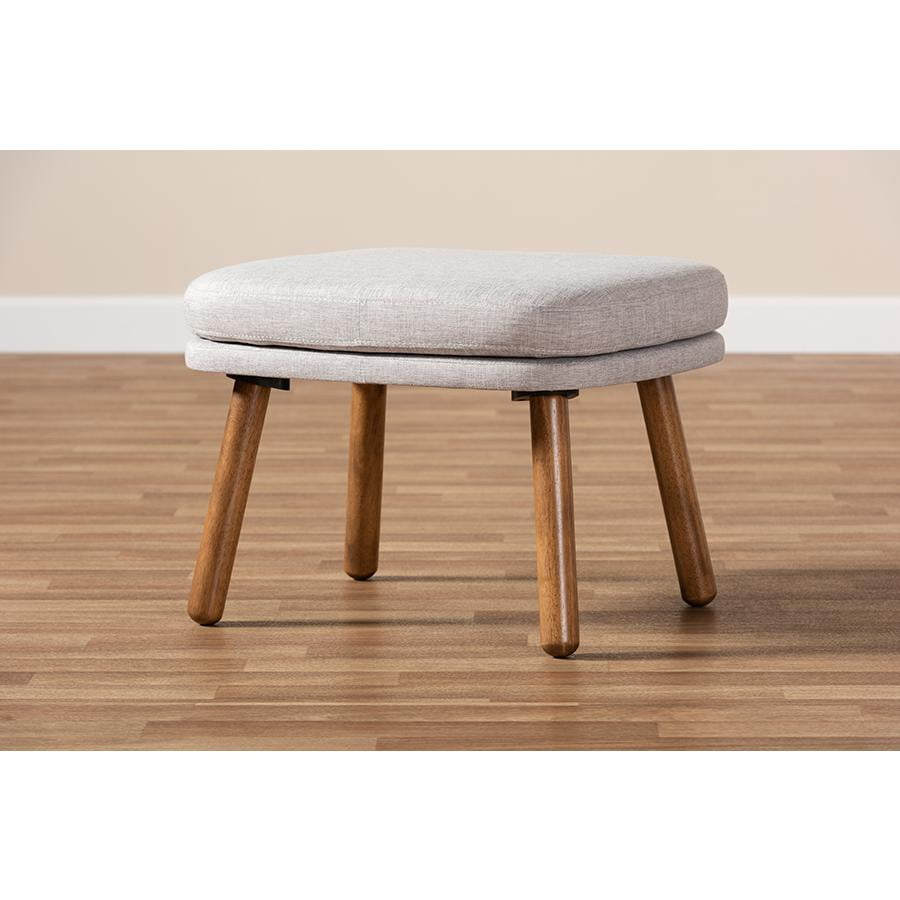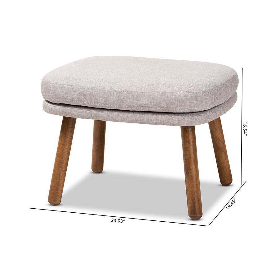 Baxton Studio Lovise Mid-Century Modern Greyish Beige Fabric Upholstered Walnut Brown Finished Wood Ottoman