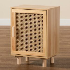 Baxton Studio Maclean Mid-Century Modern Rattan and Natural Brown Finished Wood 1-Door Nightstand