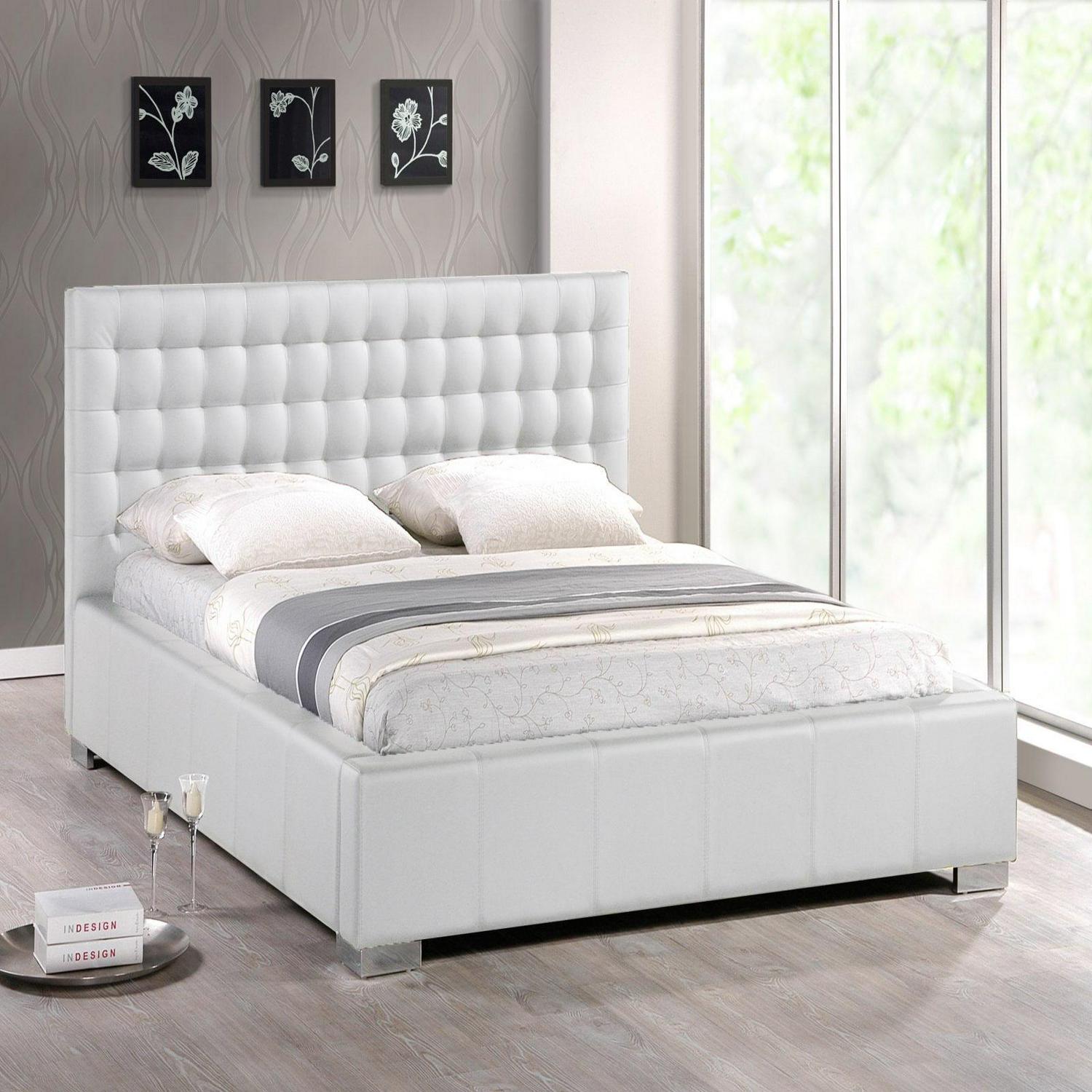 Madison White Modern Bed with Upholstered Headboard (Queen Size)